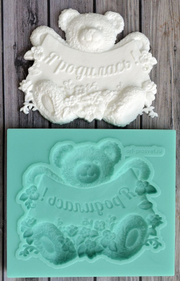 Молд мишка с надписью "Я родилась!"