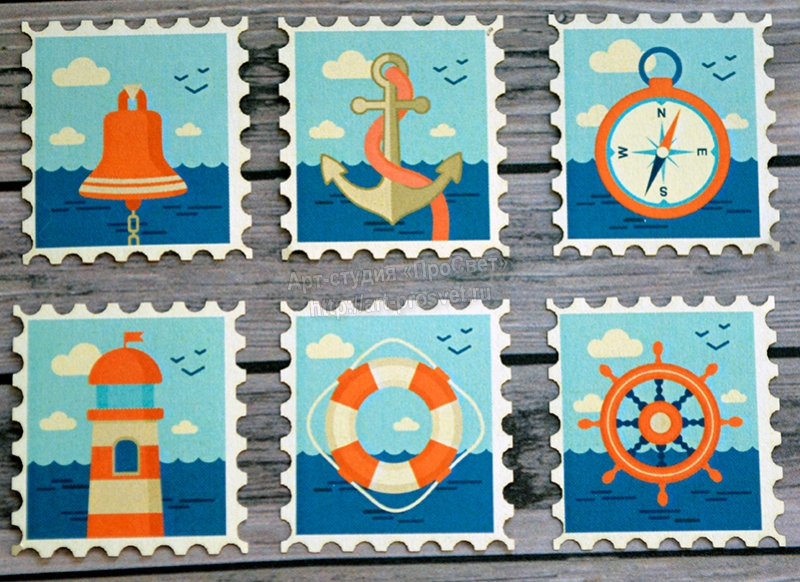 Вырубка из бумаги "Набор морских марок"