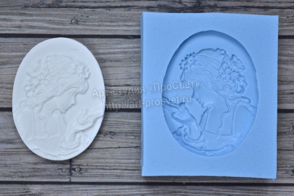 Молд камеи принцесса с голубком (плоская)