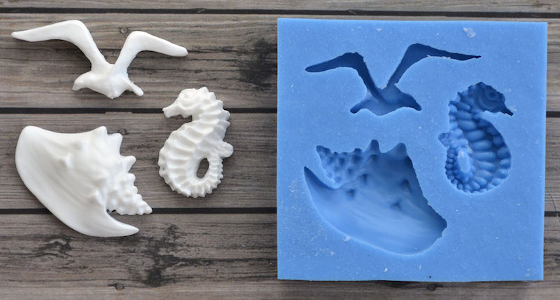 Молд "Морской конек, раковина и чайка"