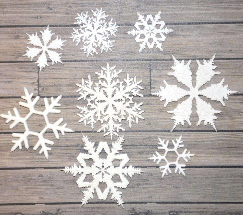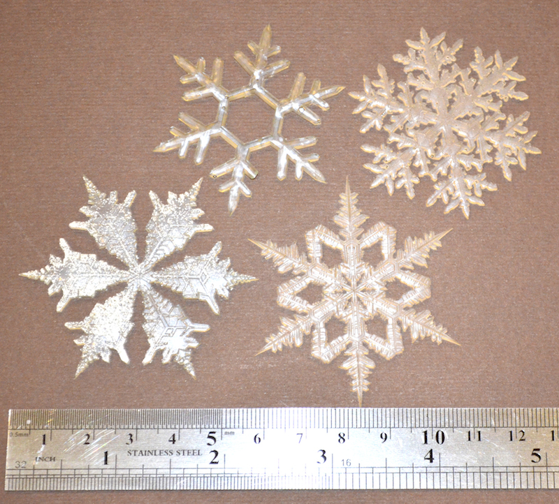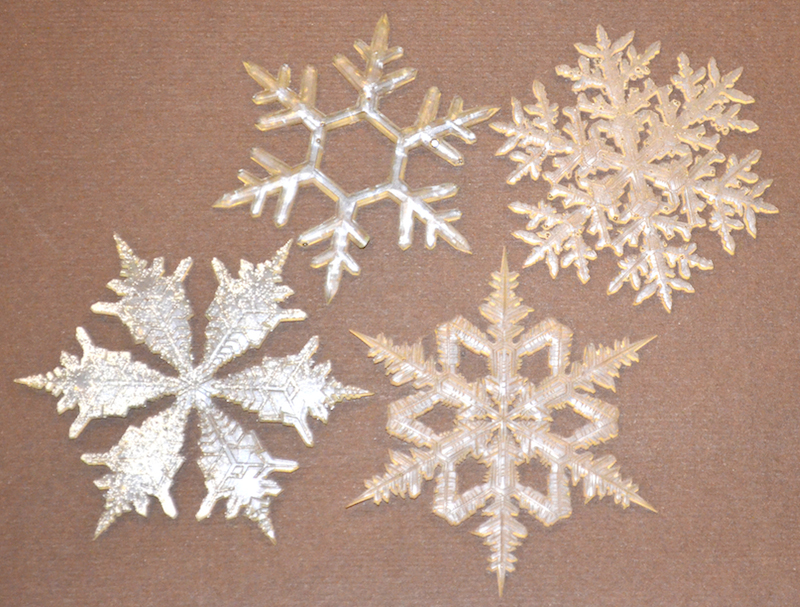 Размер снежинки 58х58 ммТолщина 2 ммХороший эффект дает использование прозрачного пластика или эпоксидной смолы.