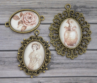 Набор металлических подвесок со стеклянными кабошонами высокого рельефа. В наборе 3 овальные рамки с размером изображения 18х26мм