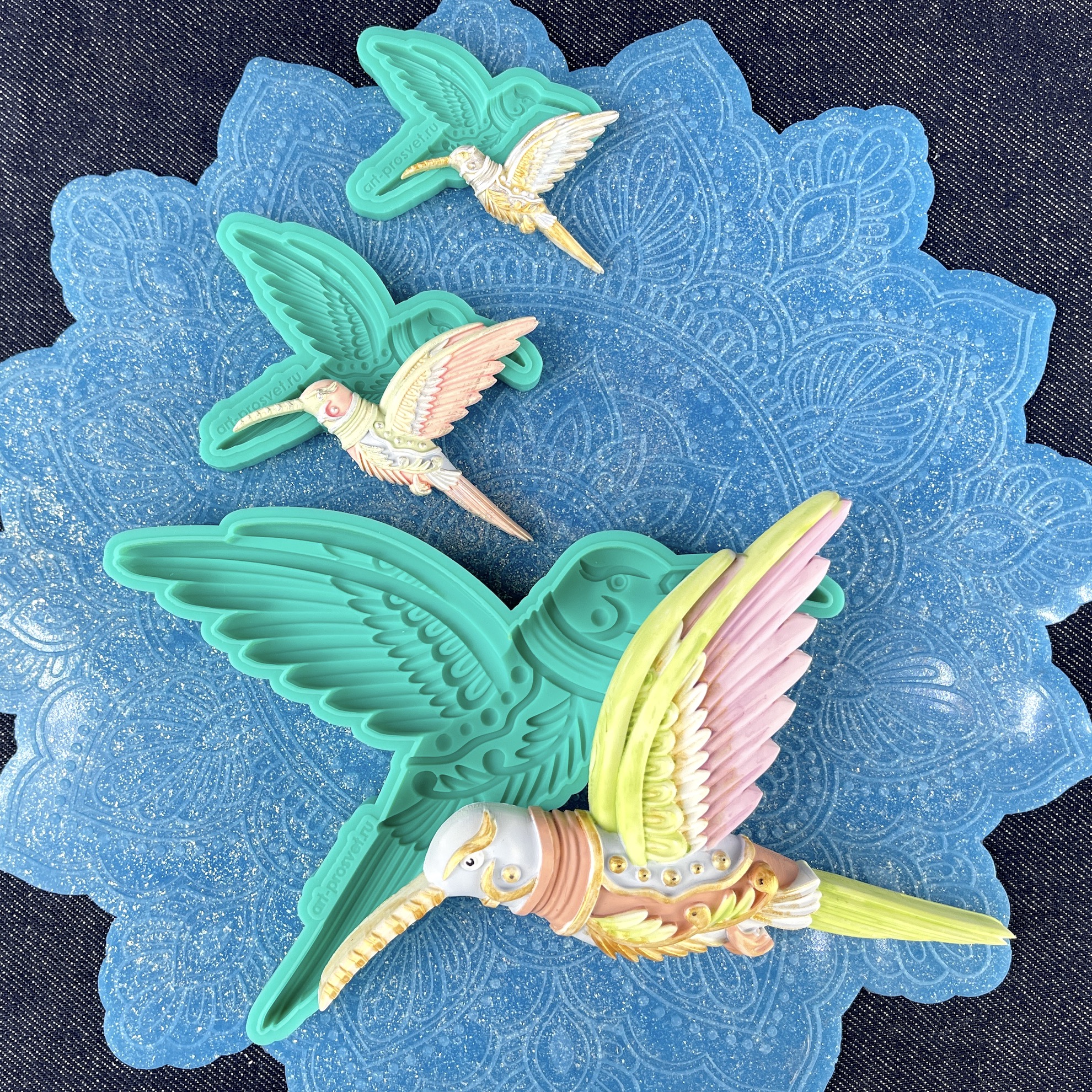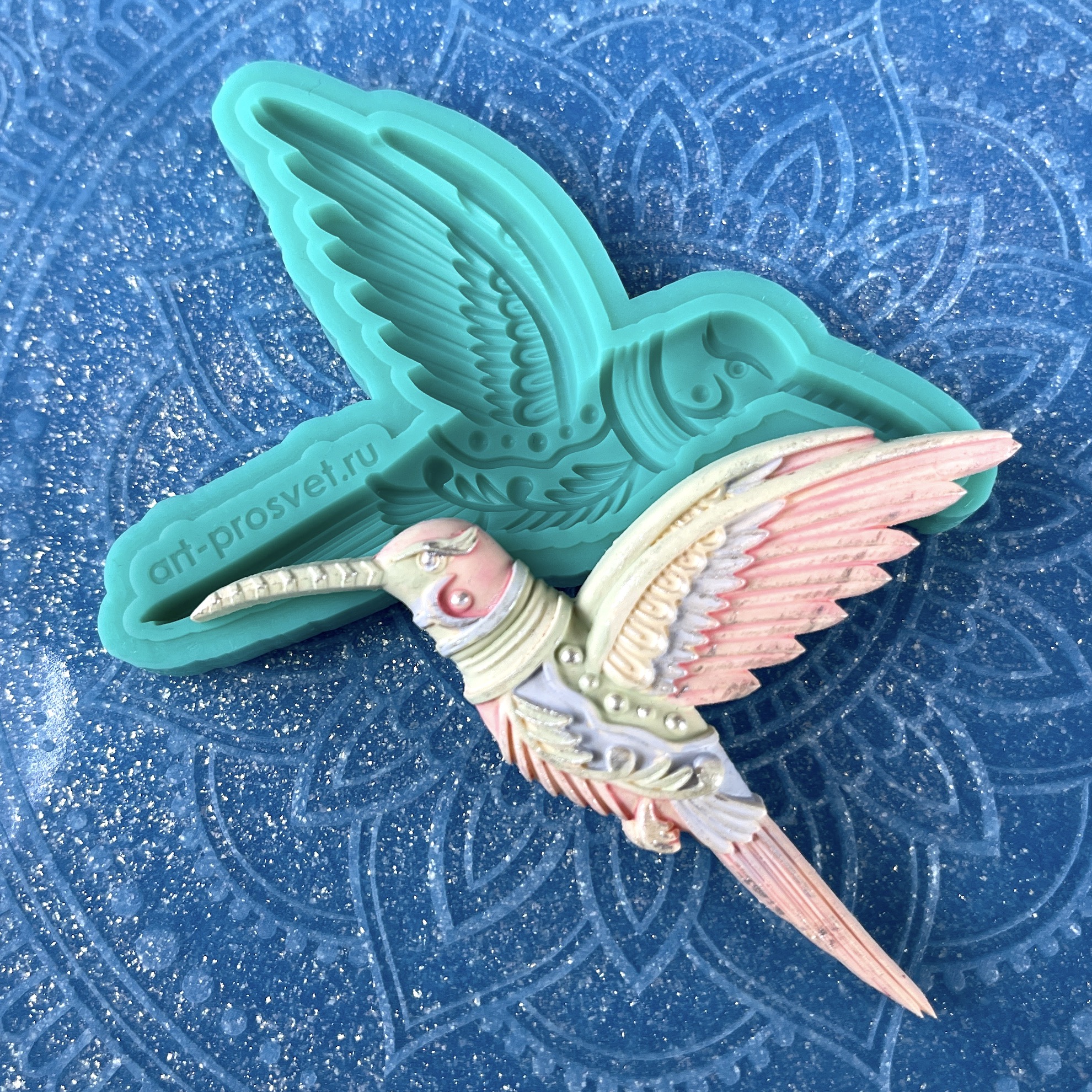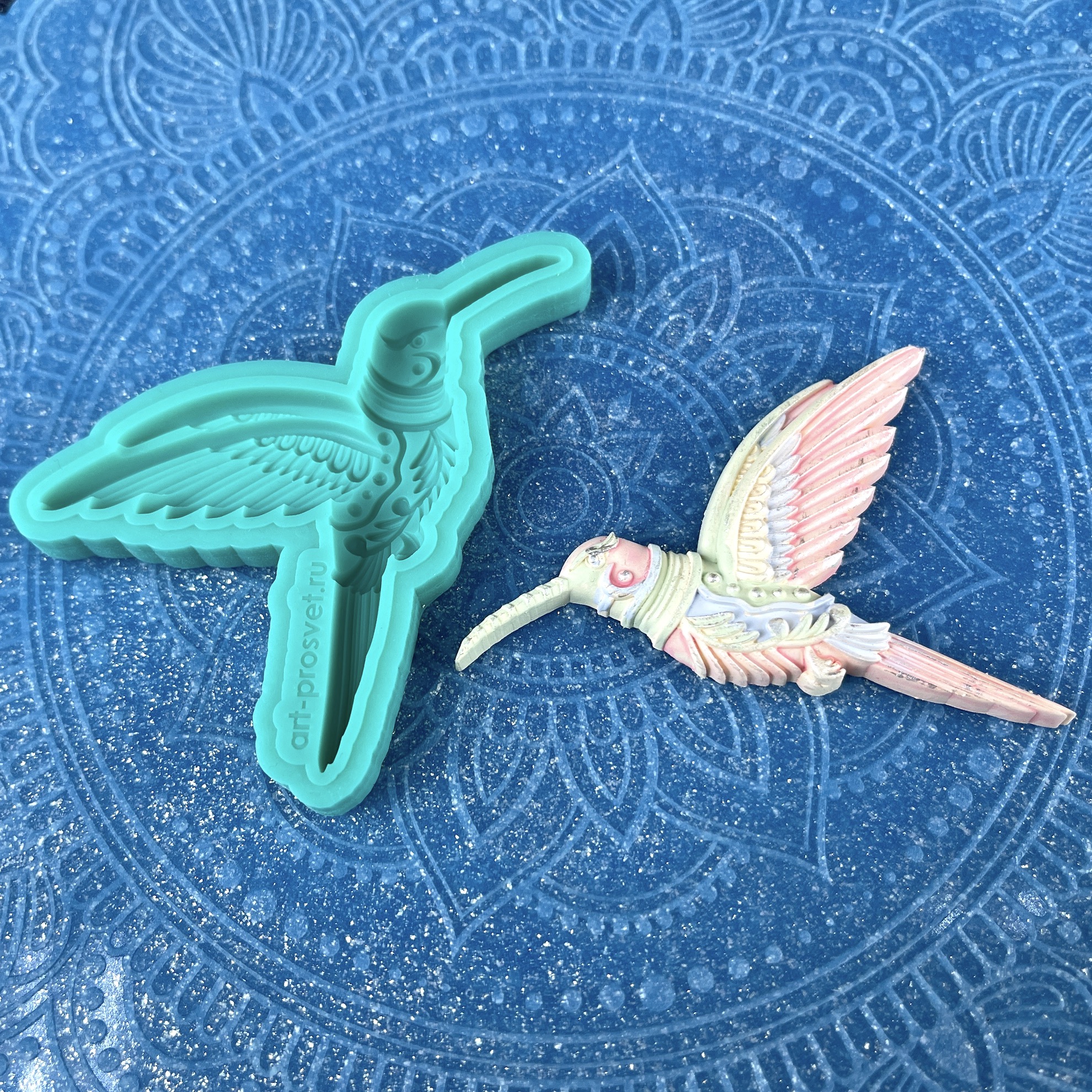 Пластиковая фигурка, представленная на фото рядом с силиконовой формой, является примером окрашивания и декорирования отливок, не входит в комплект.