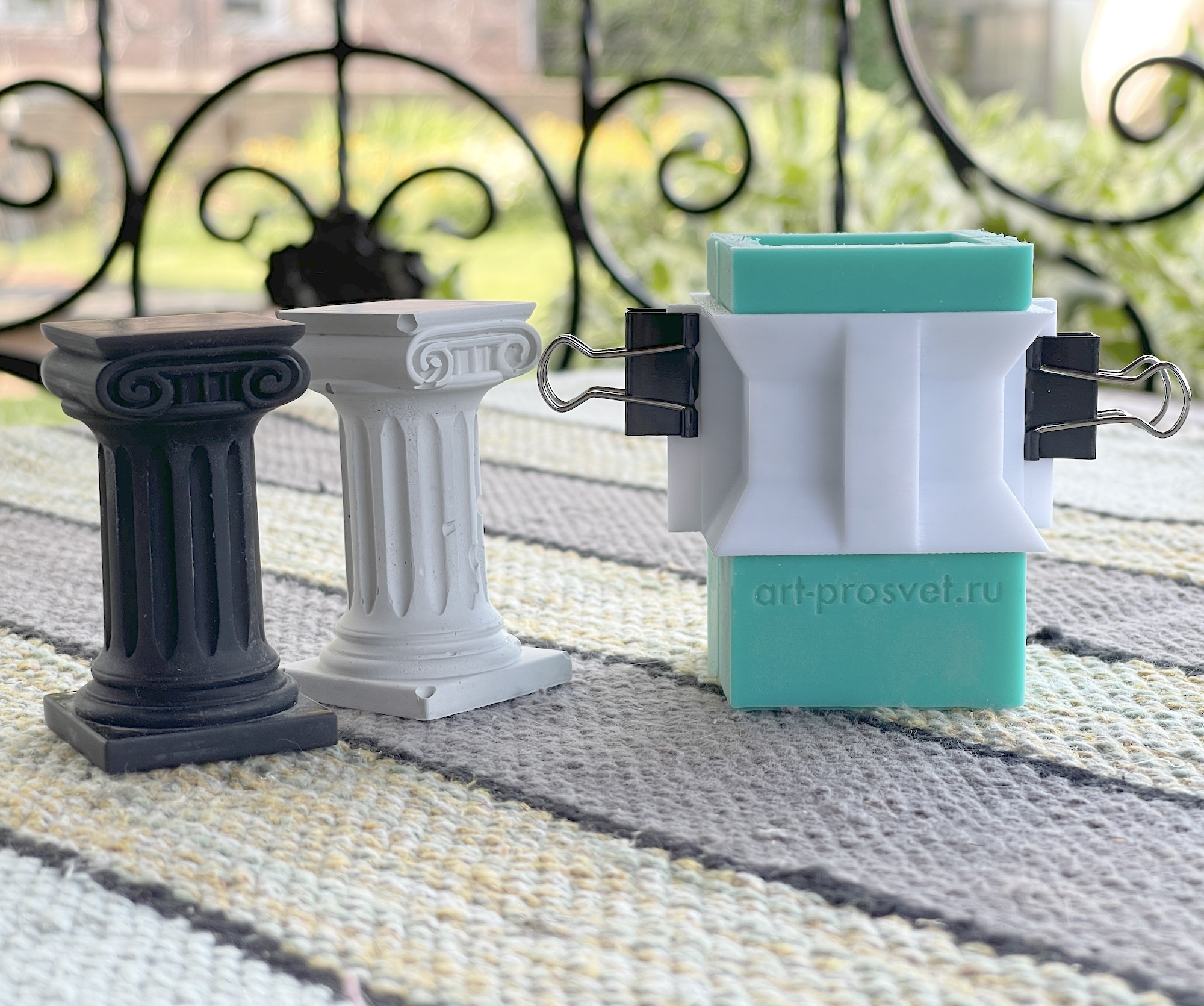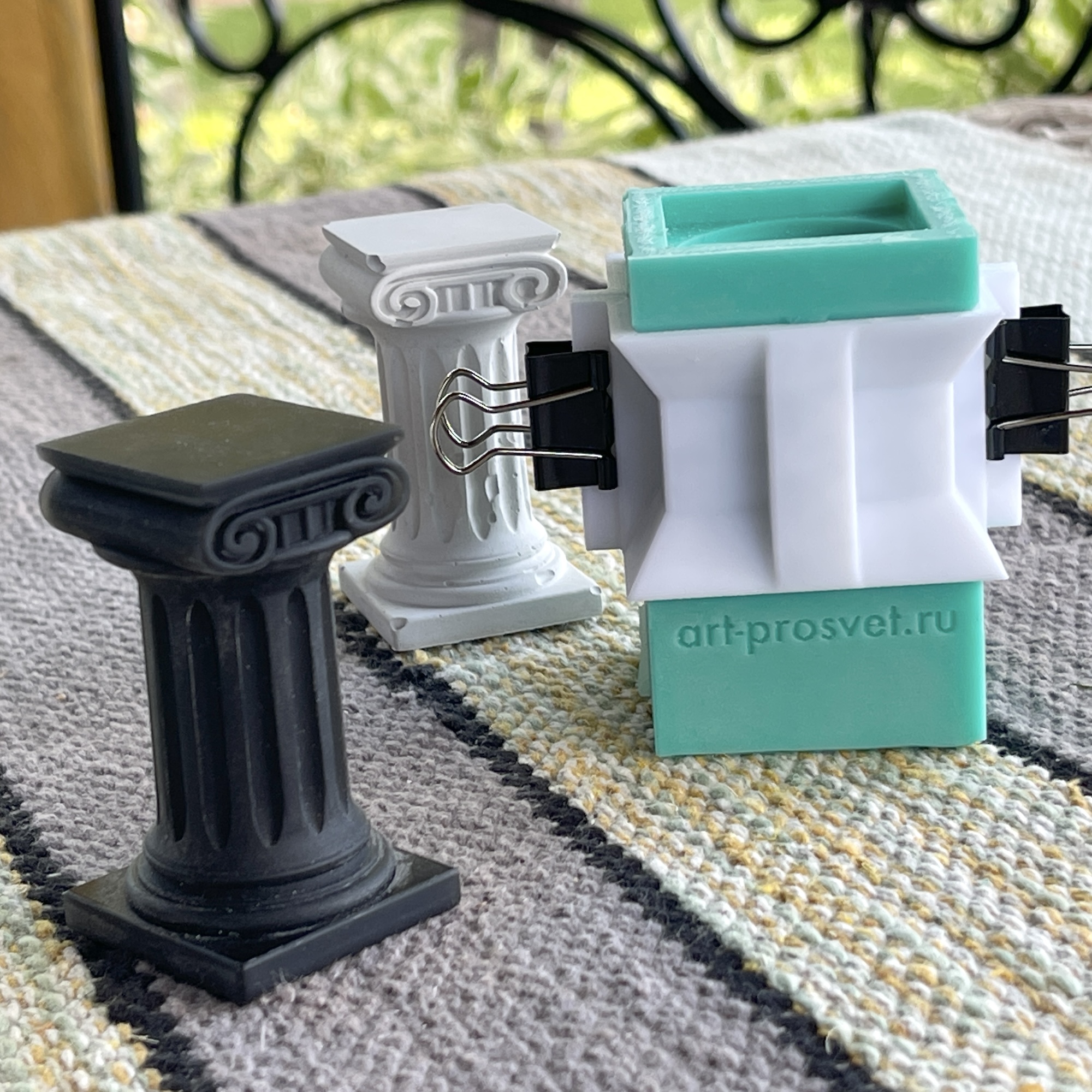 Форма "Античная колонна" подходит для изготовления декоративных элементов, мини-подставок, свечей. Имеется экспертное заключение о допустимости контакта с пищевыми продуктами. Можно заливать шоколад.