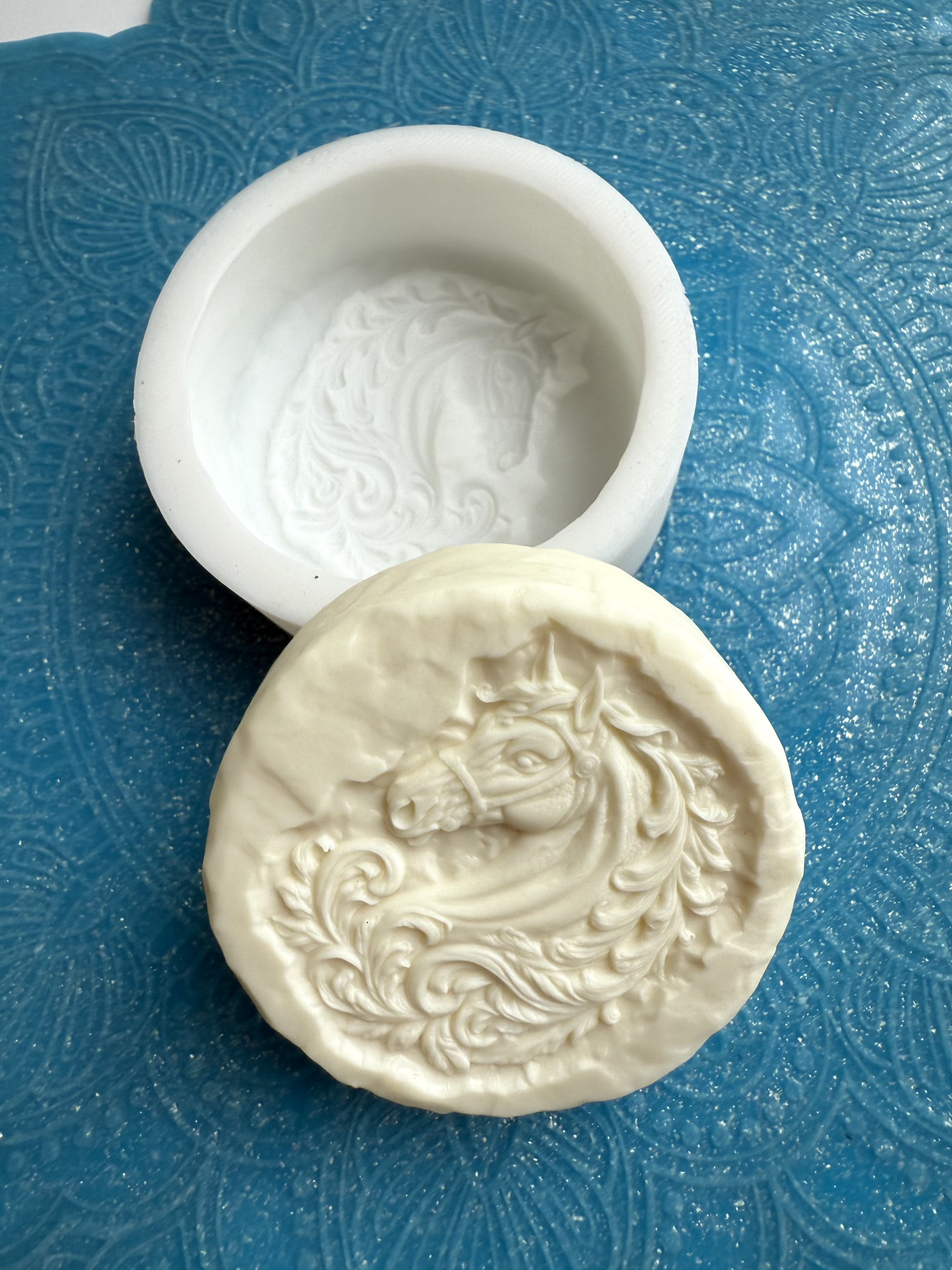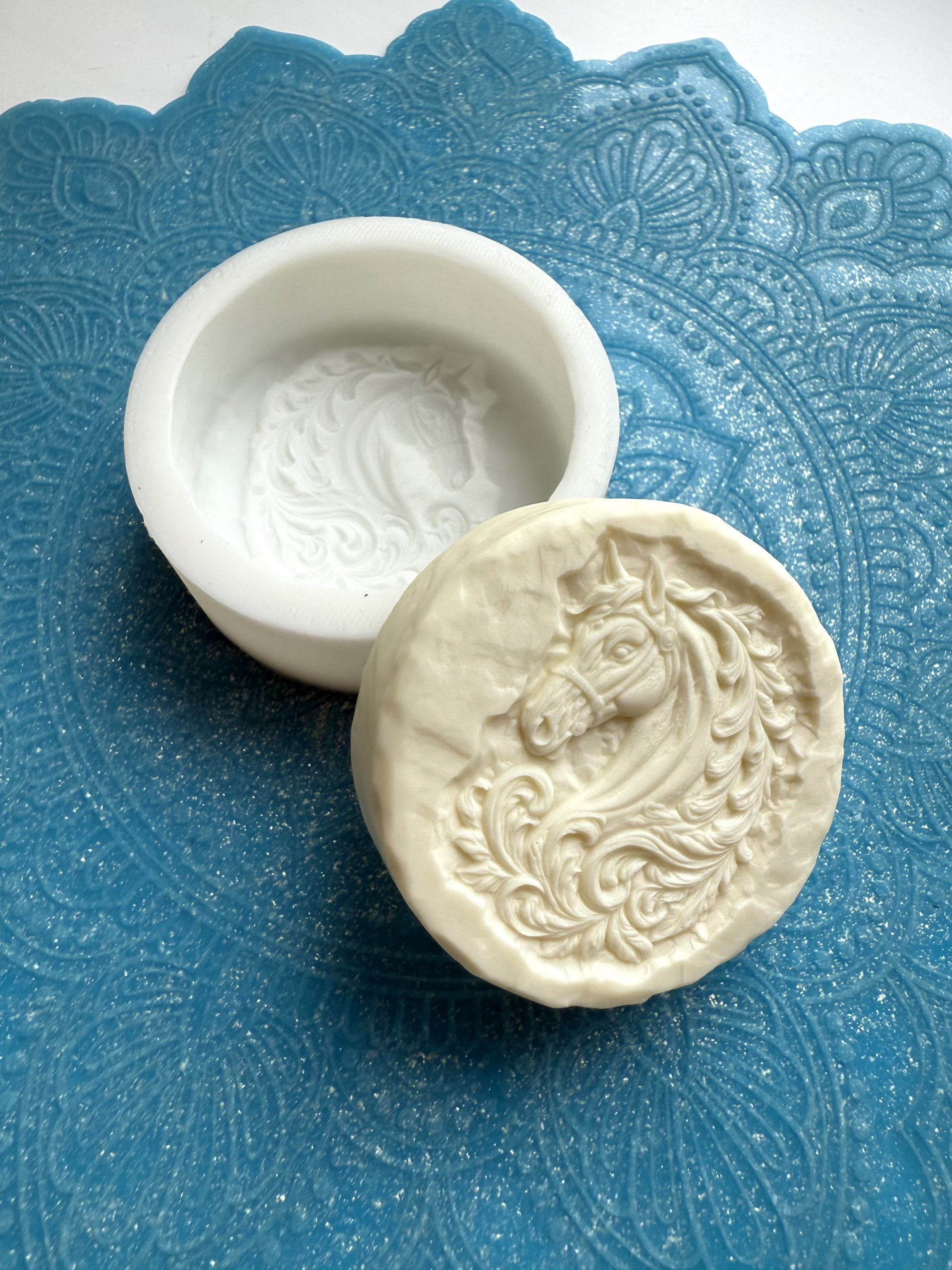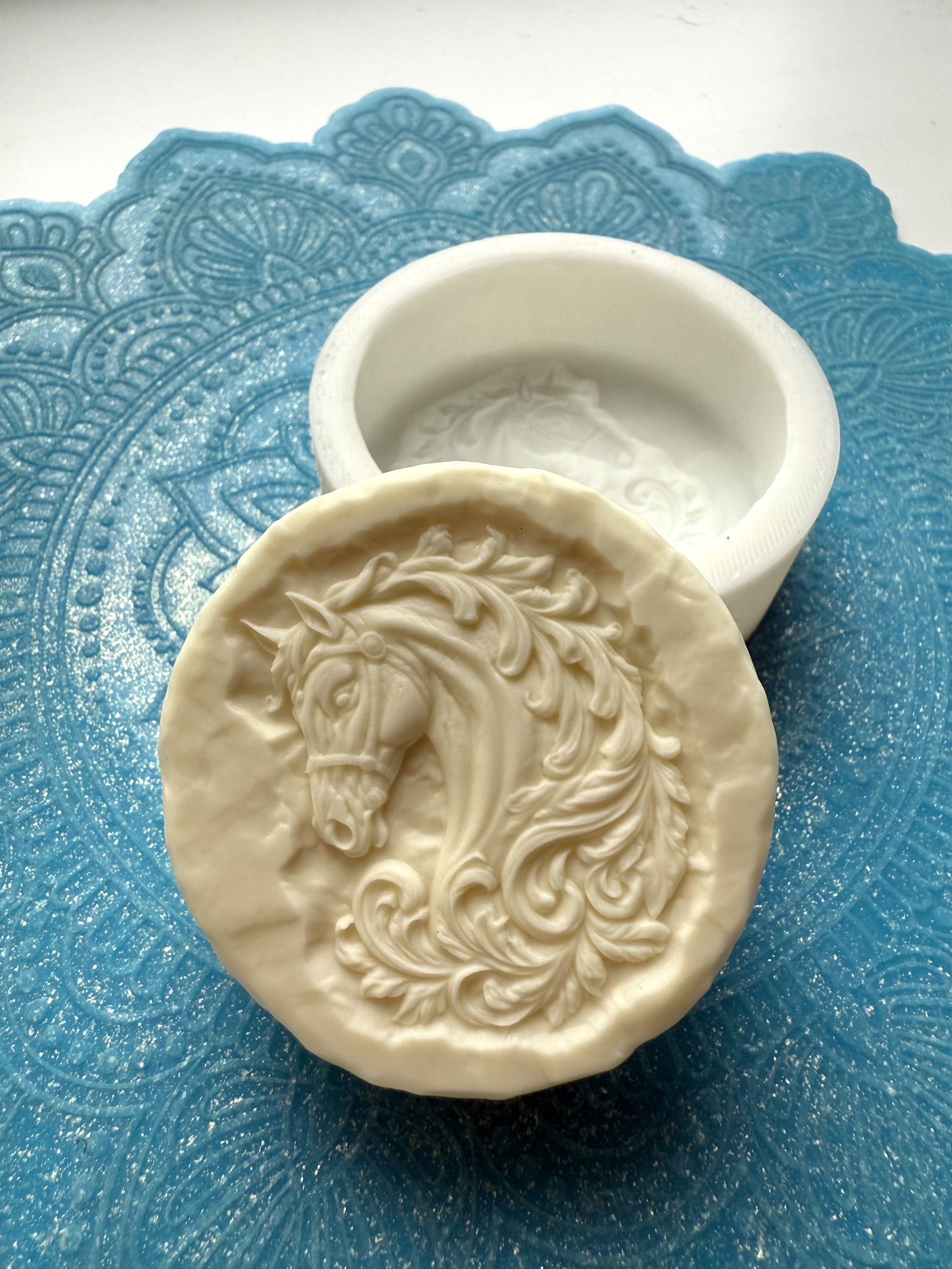 3D-молд для изготовления мыла, шоколада или свечей в виде круга "Каменый блок с Лошадью в узорах" (M)
