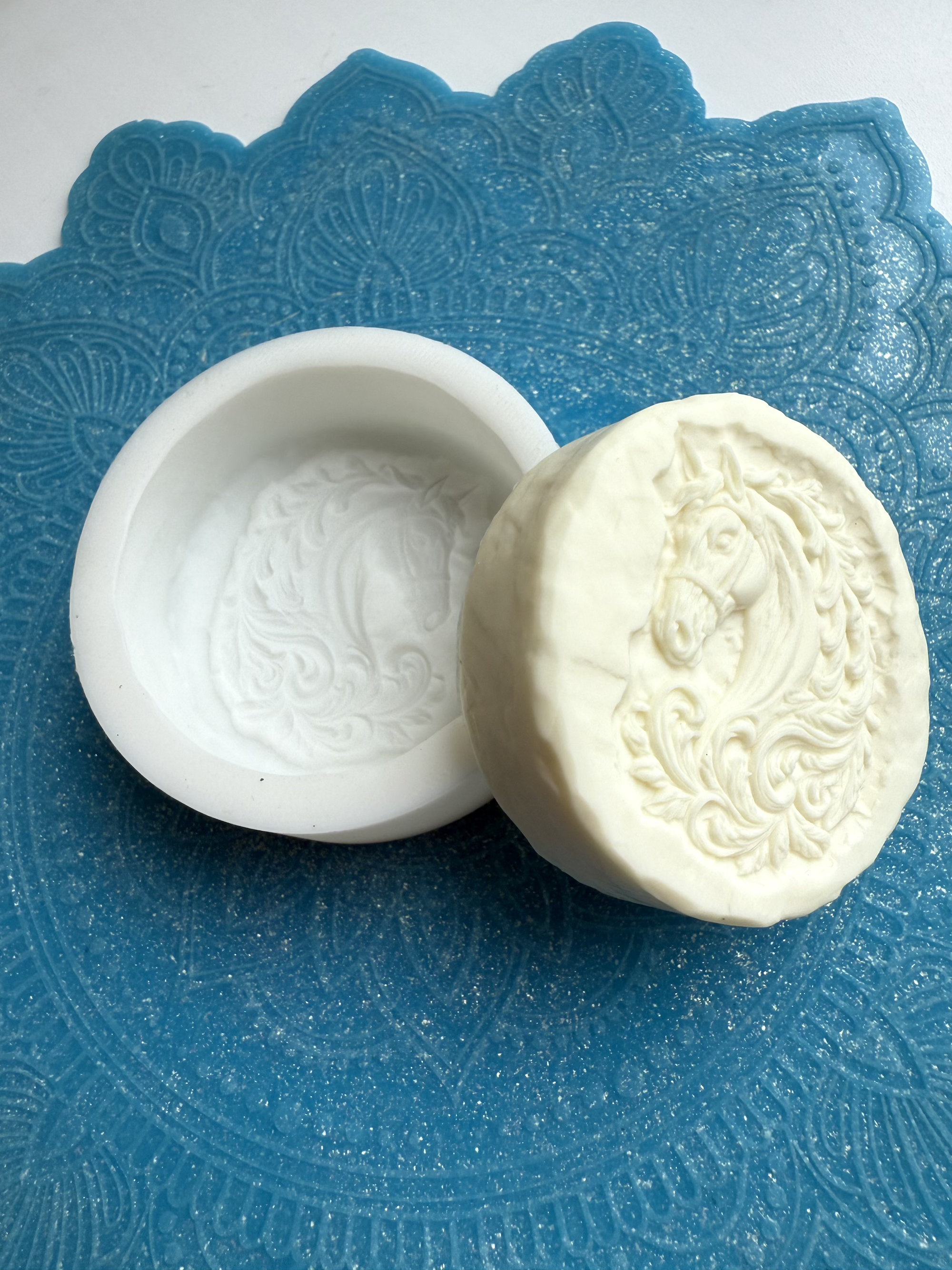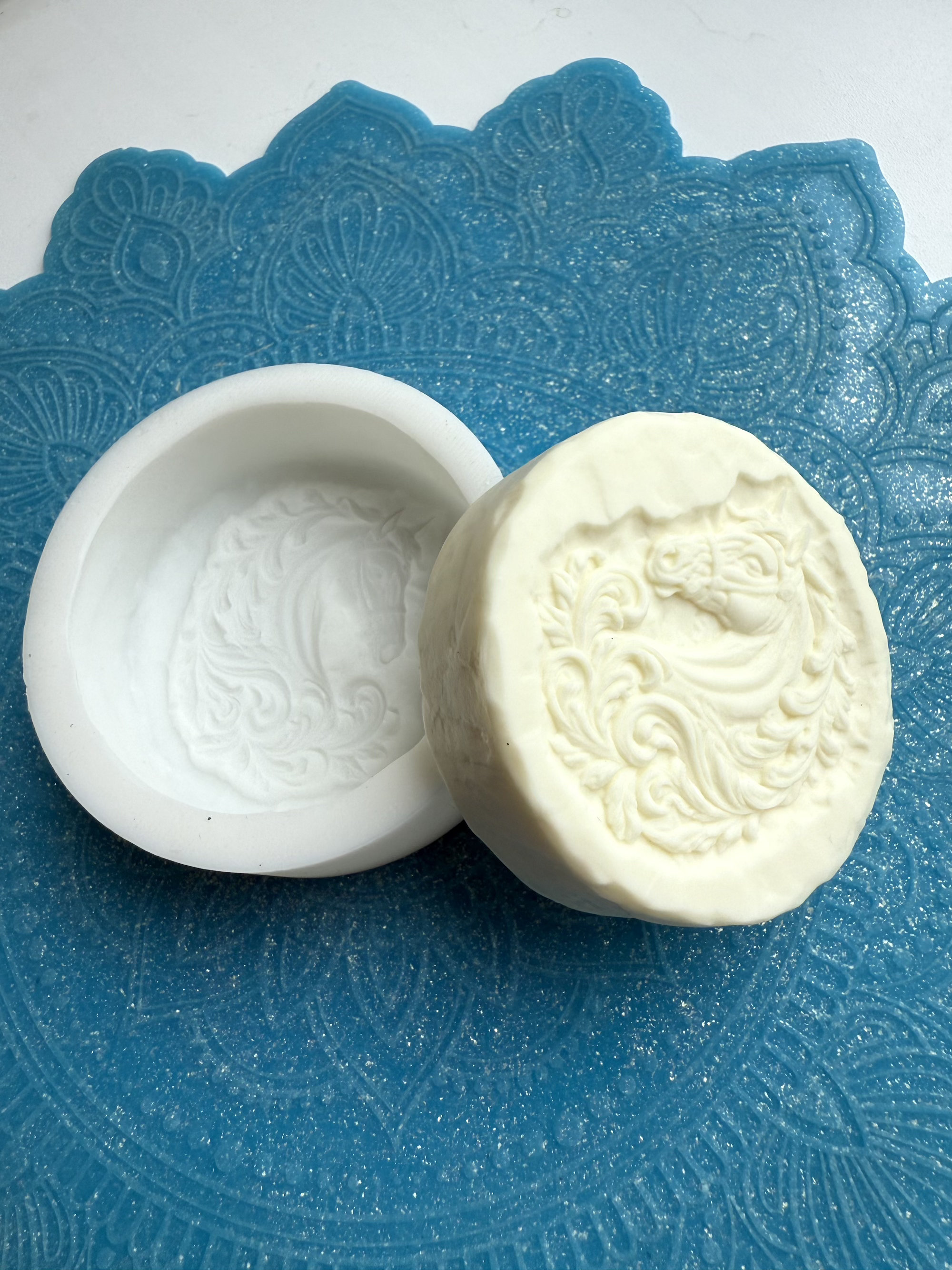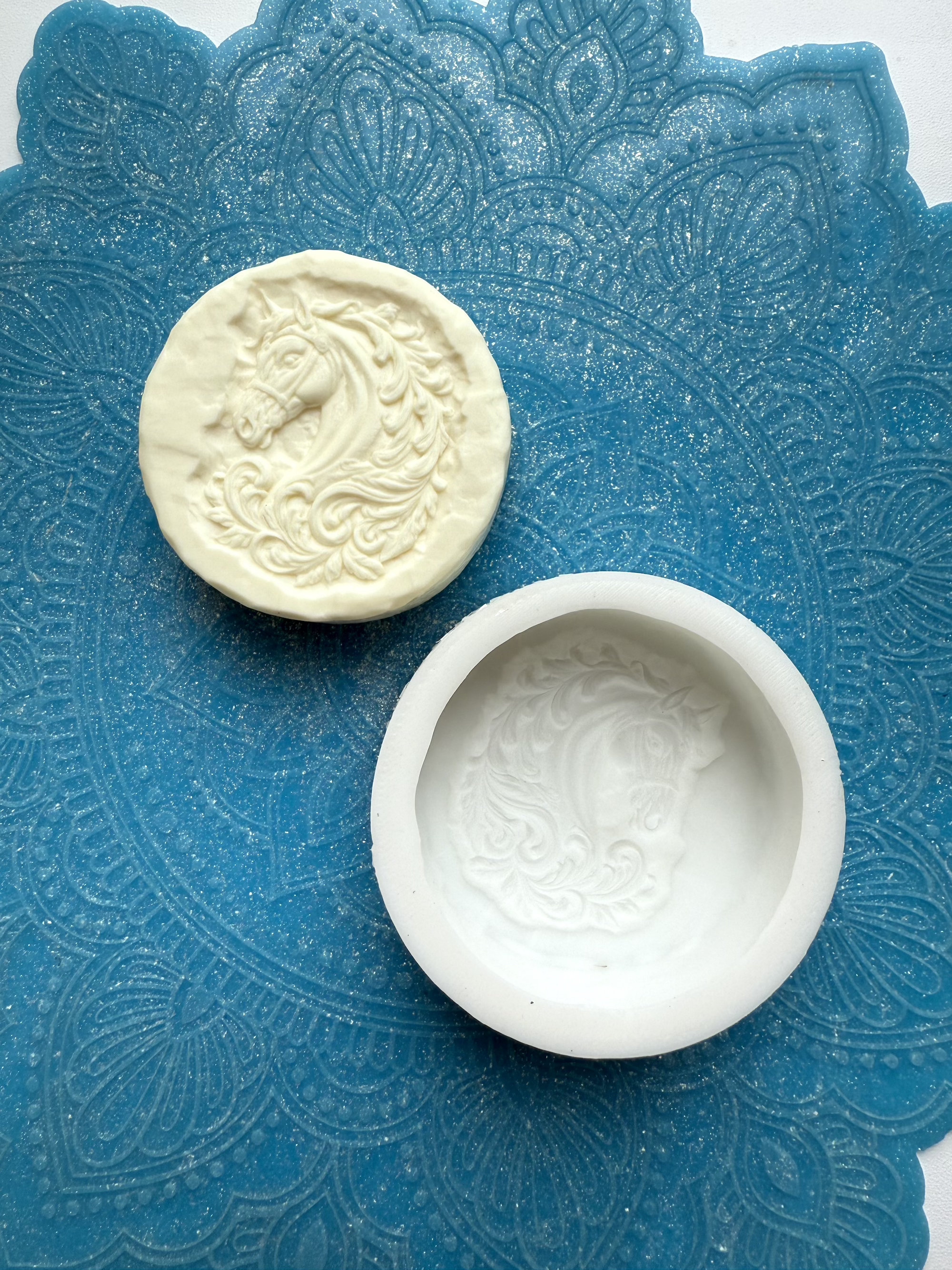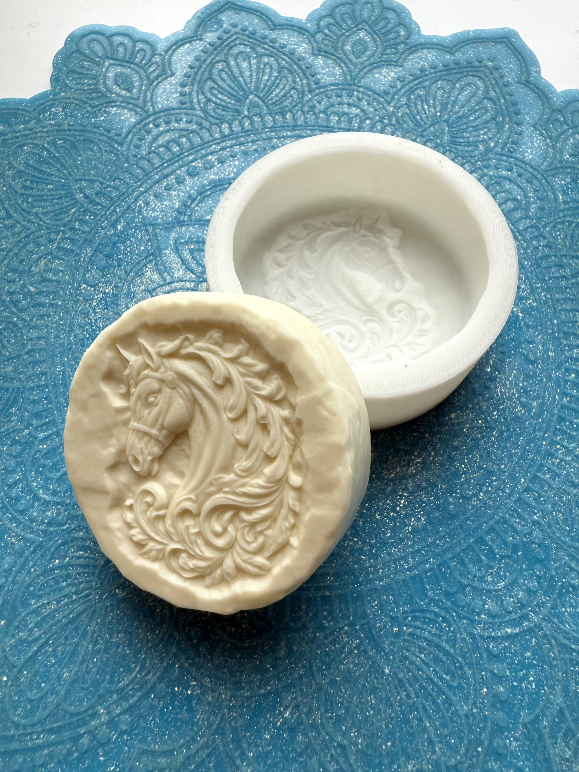 3D-молд для изготовления мыла, шоколада или свечей в виде круга "Каменый блок с Лошадью в узорах" (M)