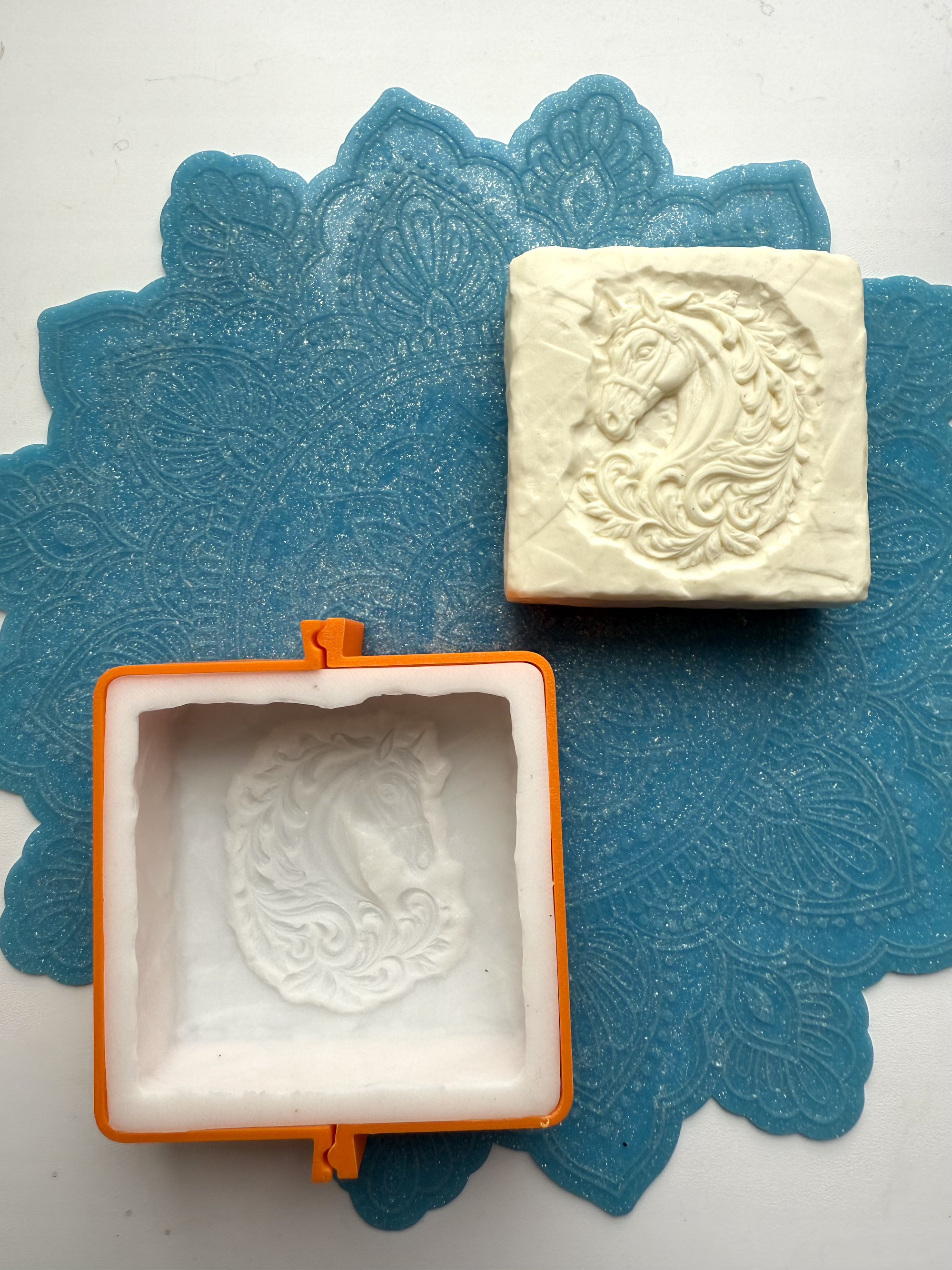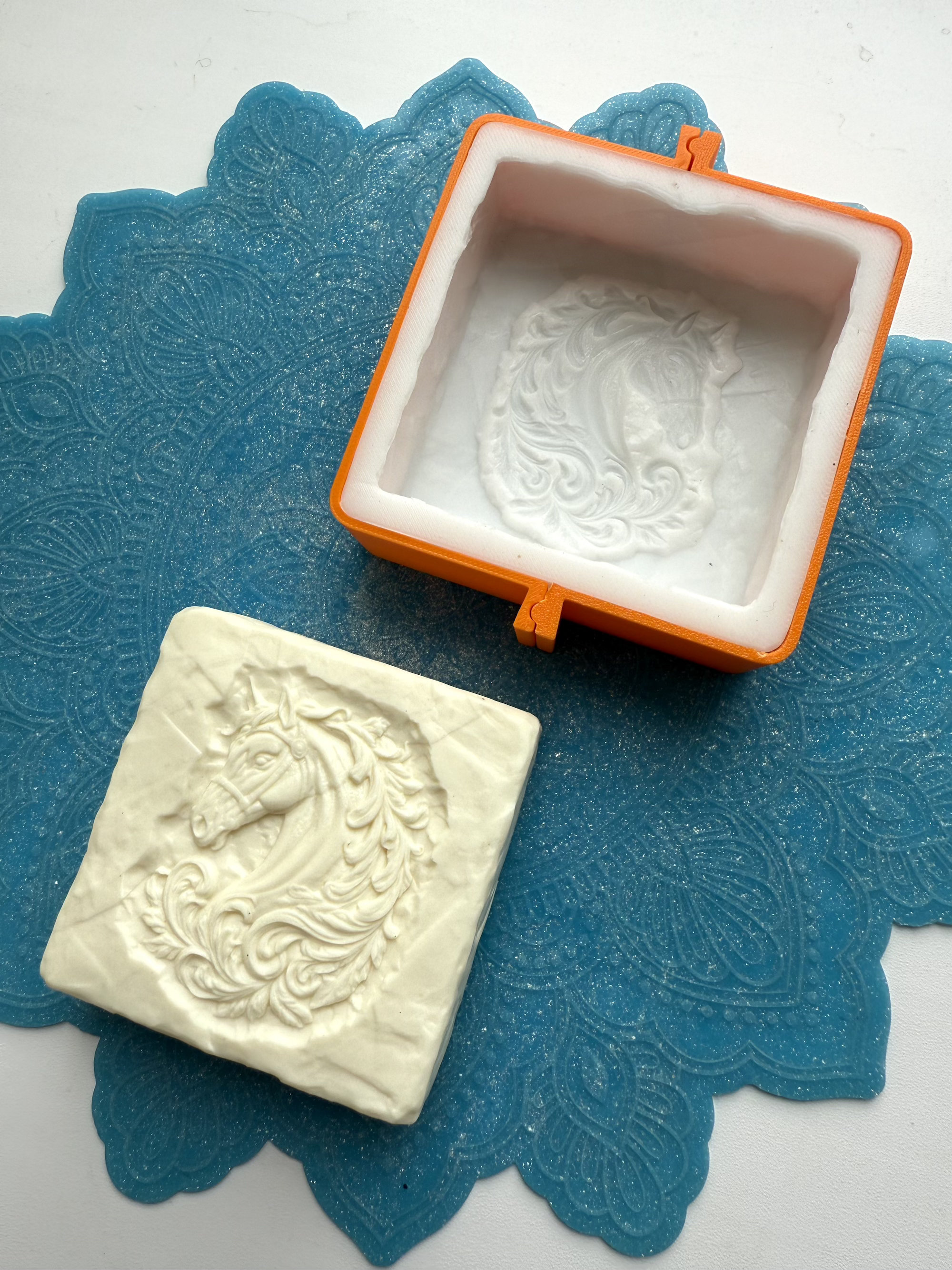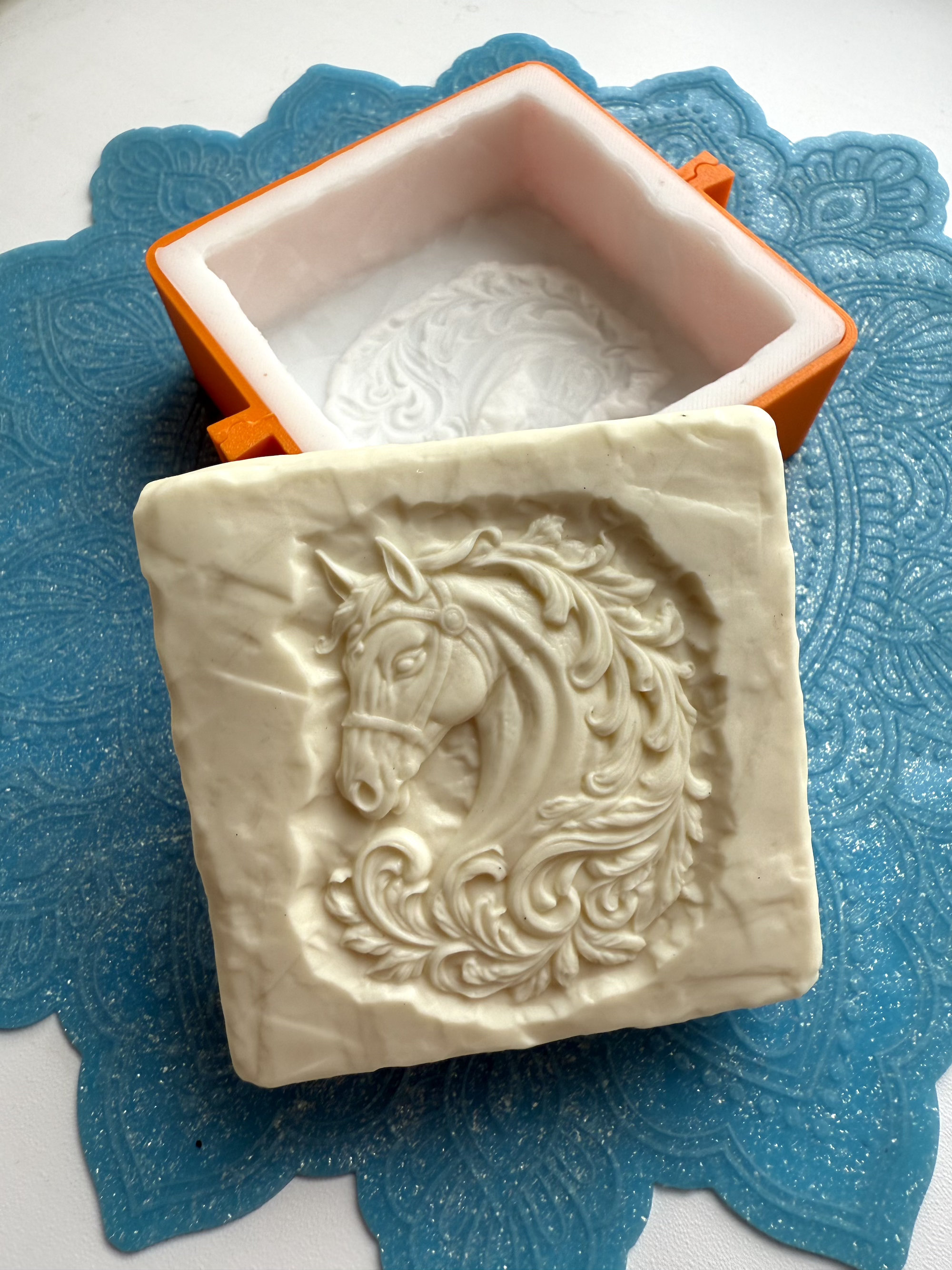 3D-молд для изготовления мыла, шоколада или свечей в виде квадратного бруска "Каменый блок с Лошадью в узорах" (L)