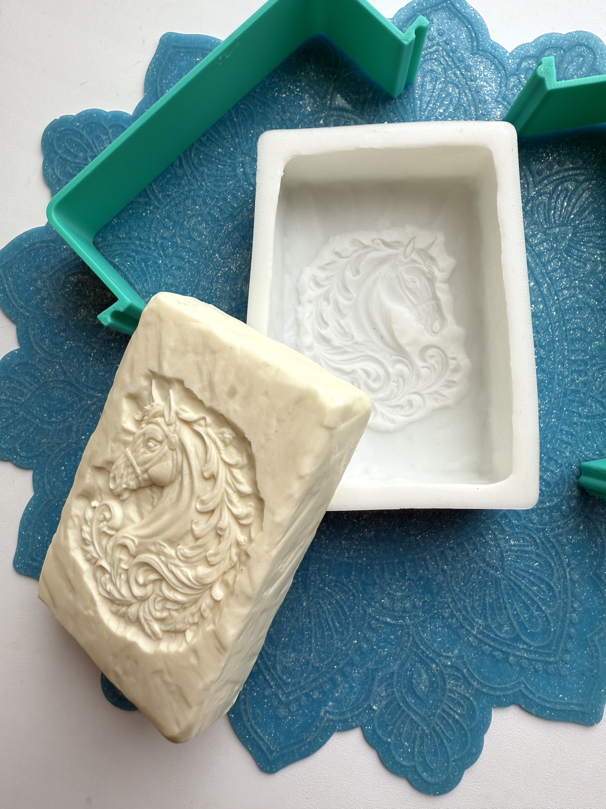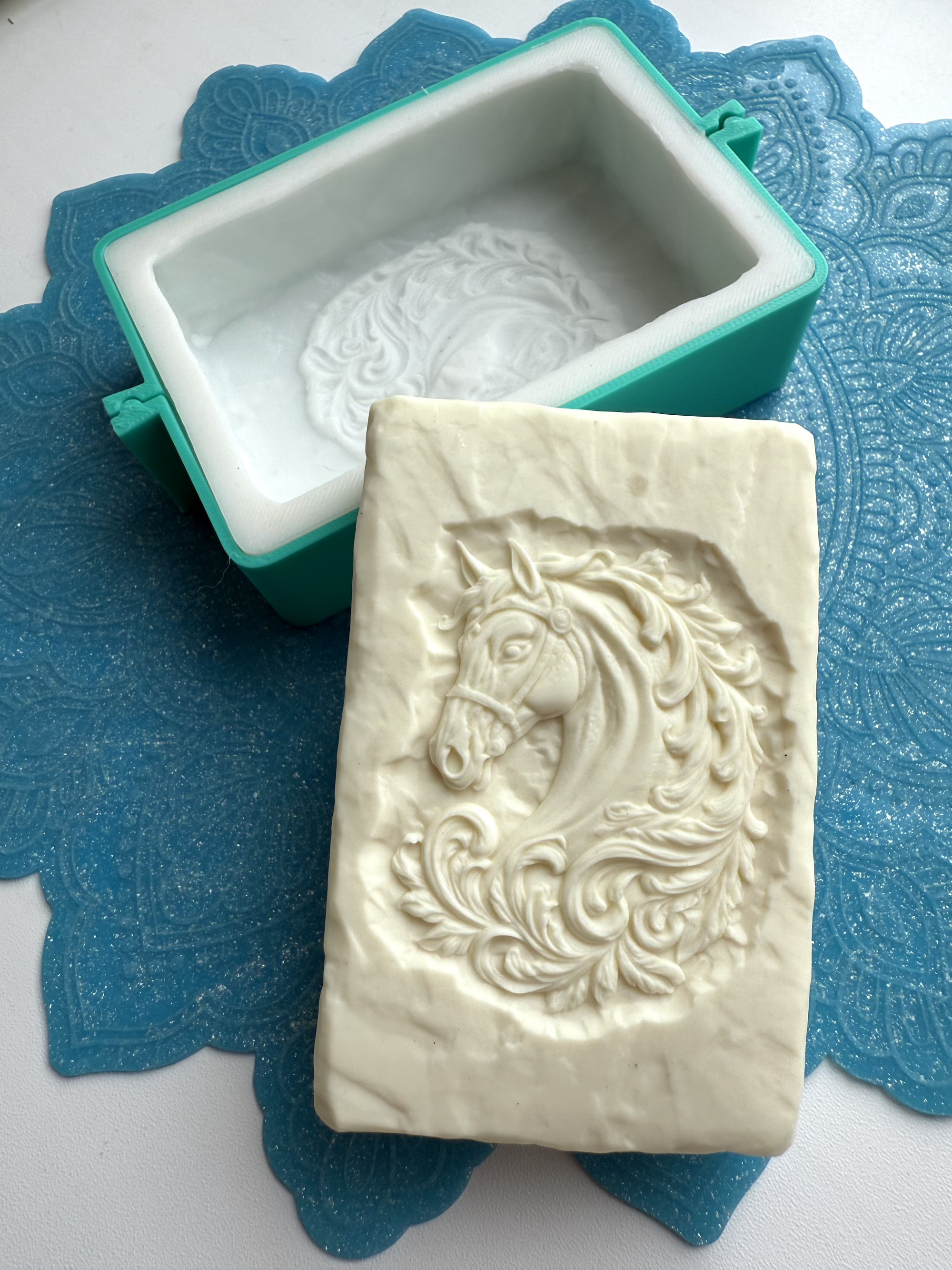3D-молд для изготовления мыла, шоколада или свечей в виде прямоугольного бруска "Каменый блок с Лошадью в узорах" (L)