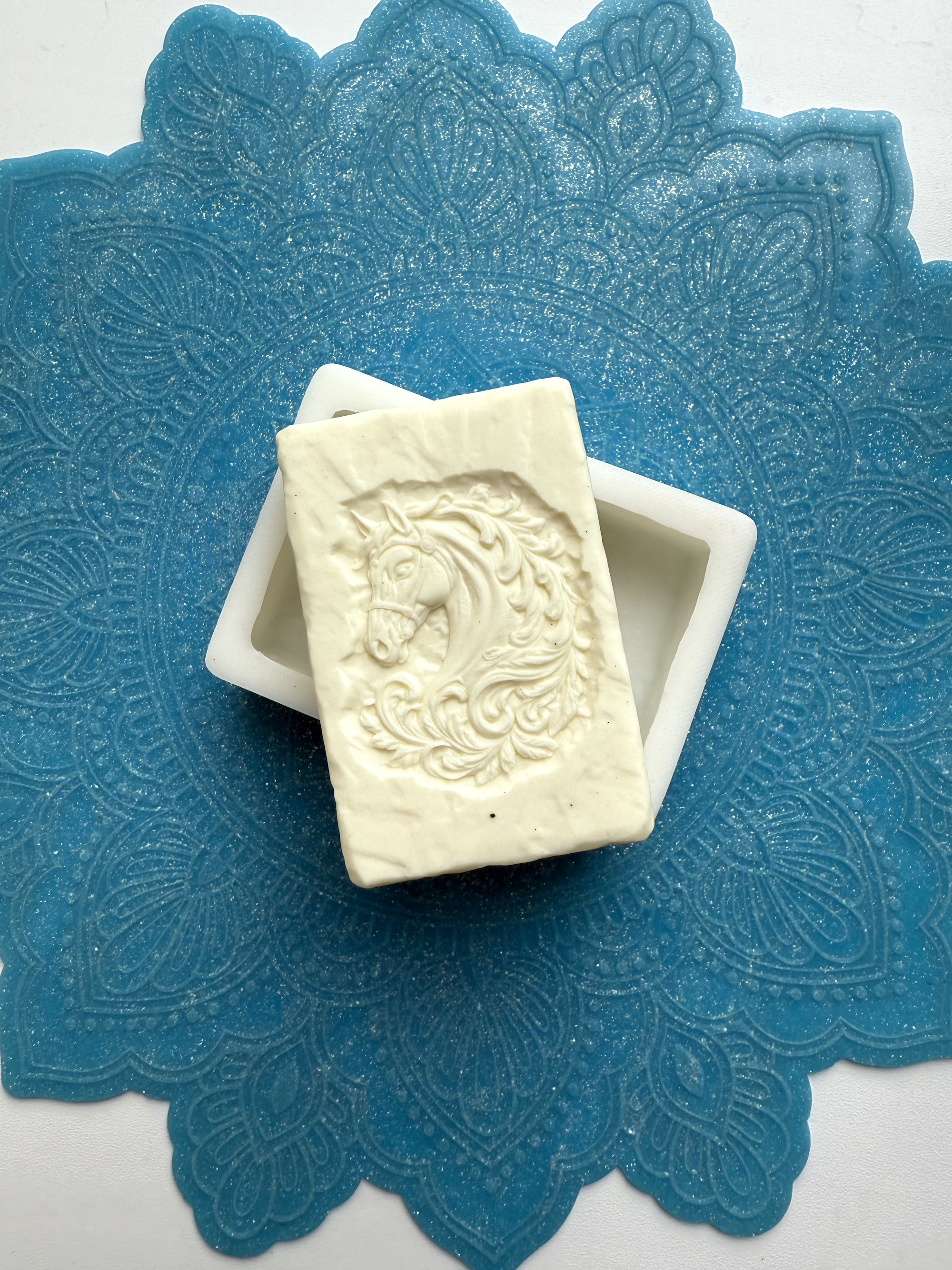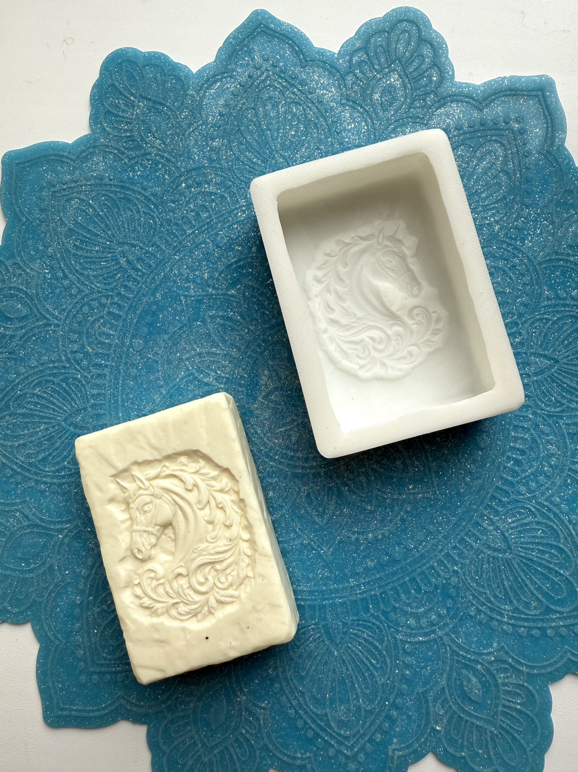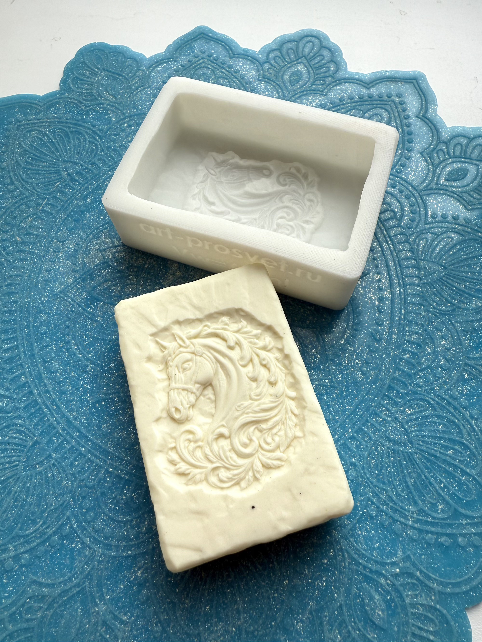 3D-молд для изготовления мыла, шоколада или свечей в виде прямоугольного бруска "Каменый блок с Лошадью в узорах" (M)