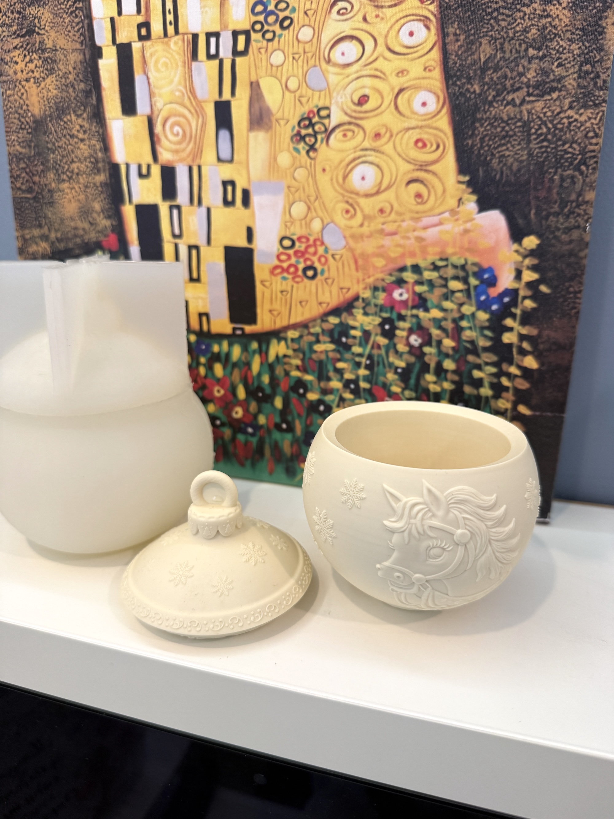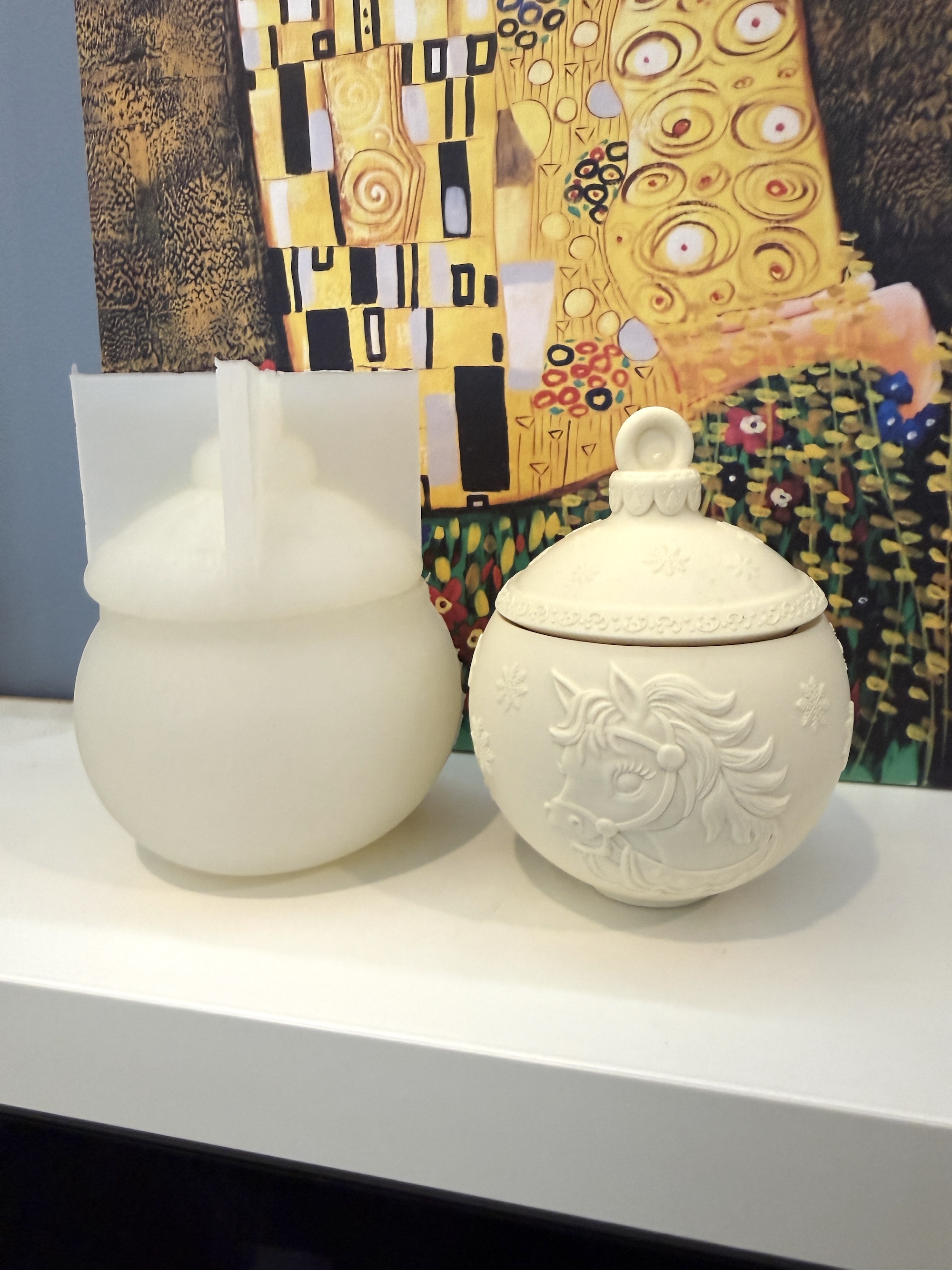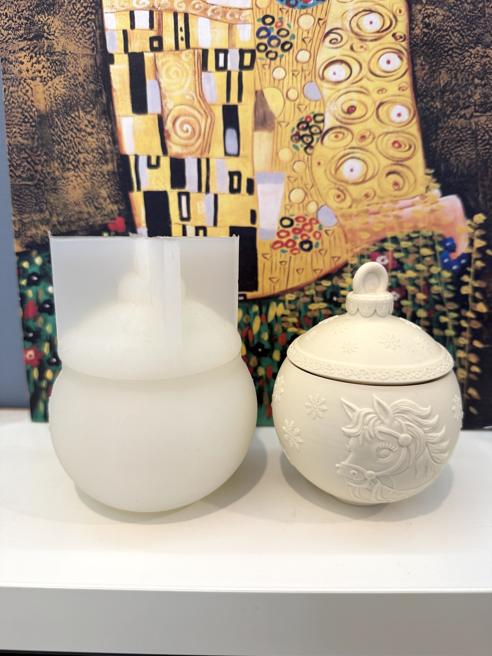 3D-молд контейнер для свечи, шкатулка "Ёлочный шар с лошадкой" (L)