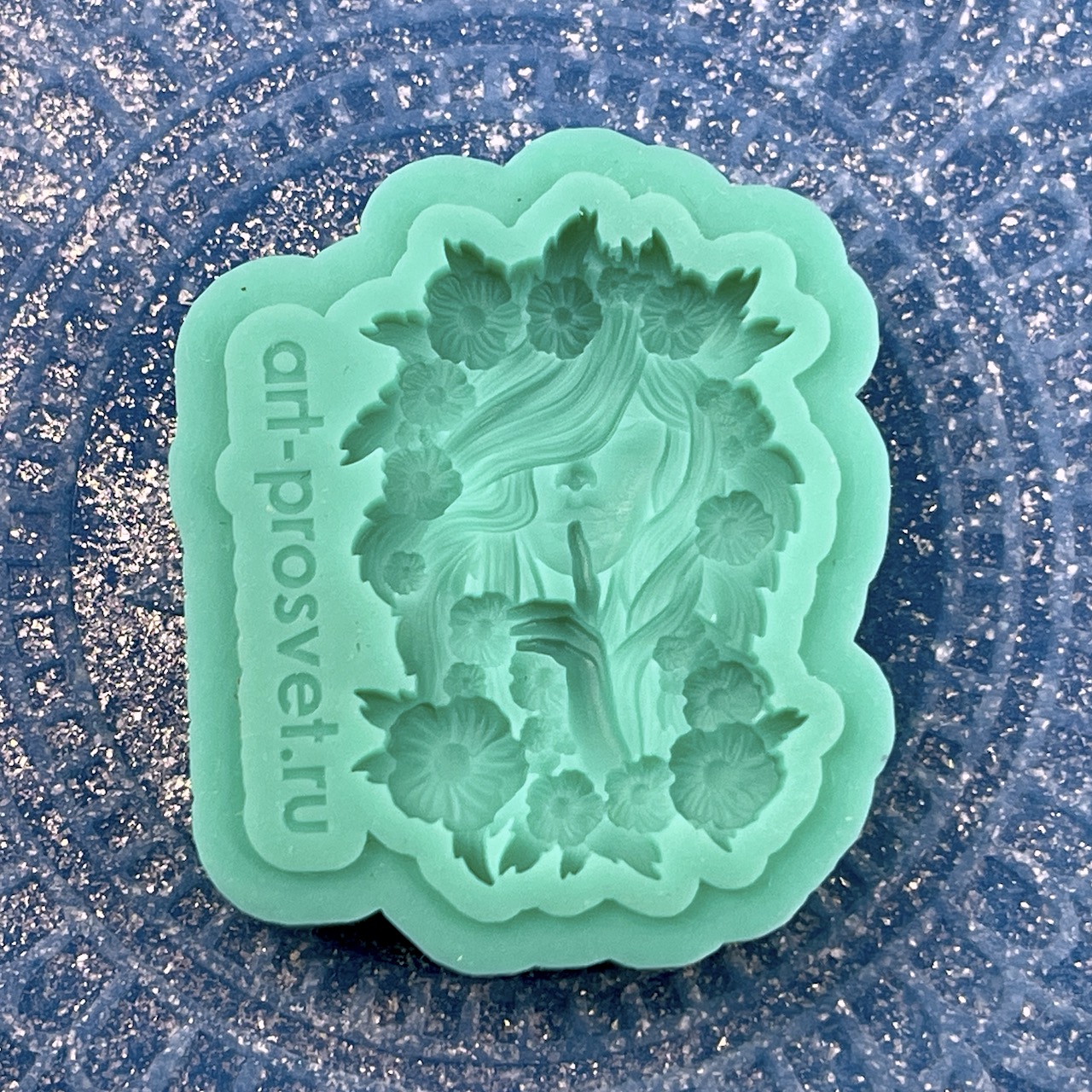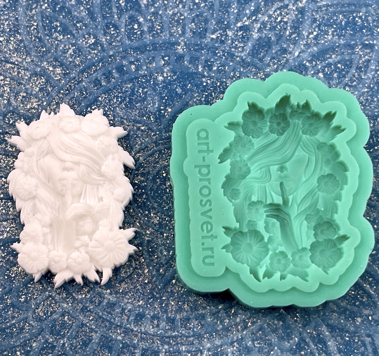 Фигурка, представленная на фото рядом с силиконовой формой, является примером окрашивания и декорирования отливок, не входит в комплект.