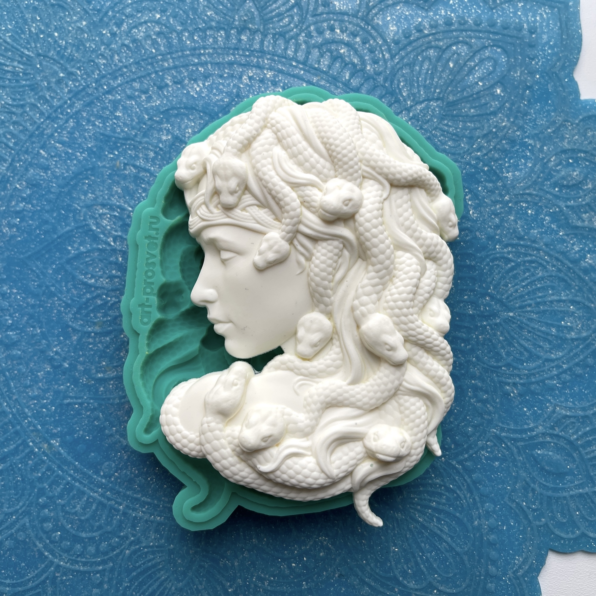 Фигурка, представленная на фото рядом с силиконовой формой, является примером окрашивания и декорирования отливок, не входит в комплект.