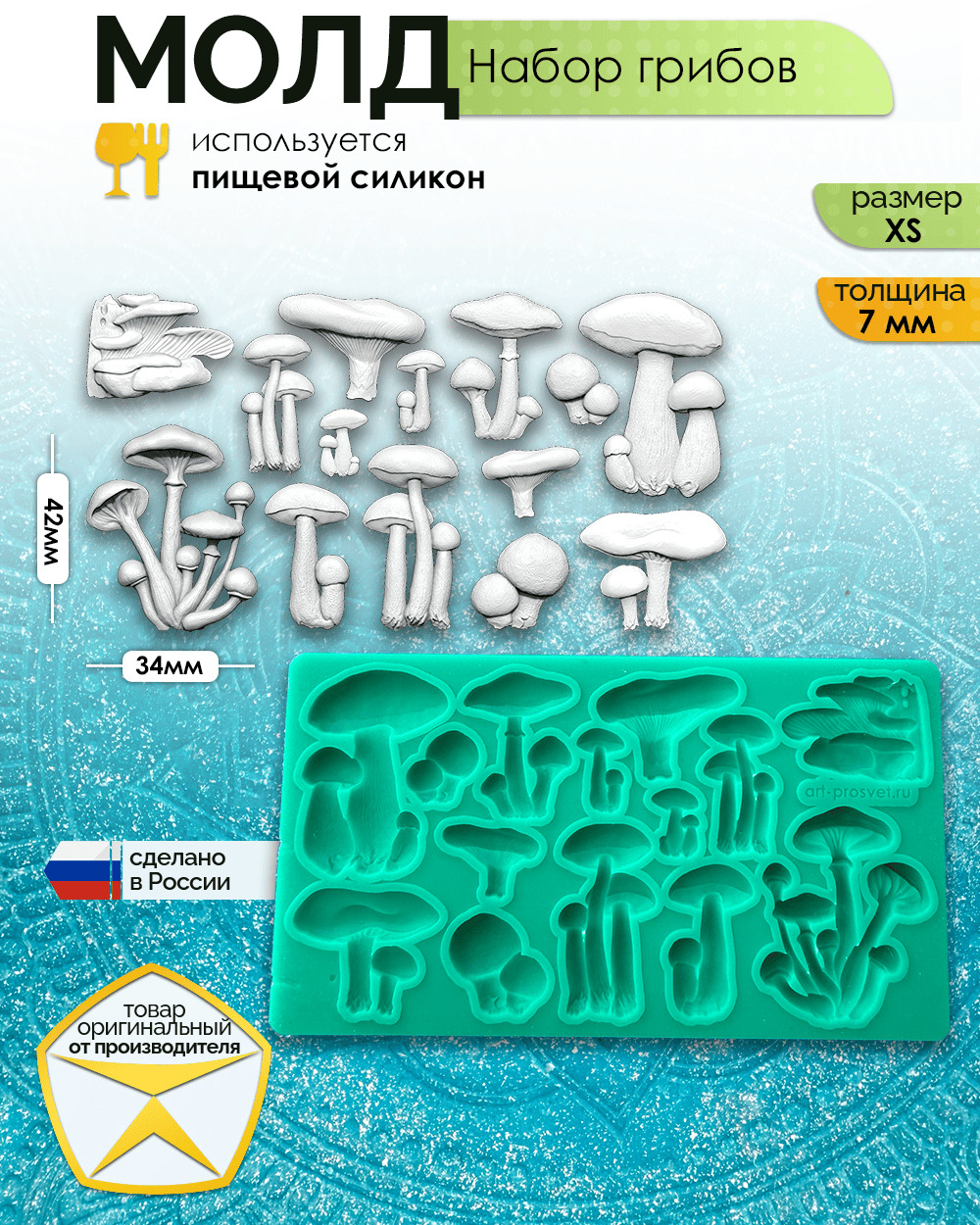 - Идеальная детализация. Платиновый силикон точно передает текстуру шляпок и изящные формы грибов.
