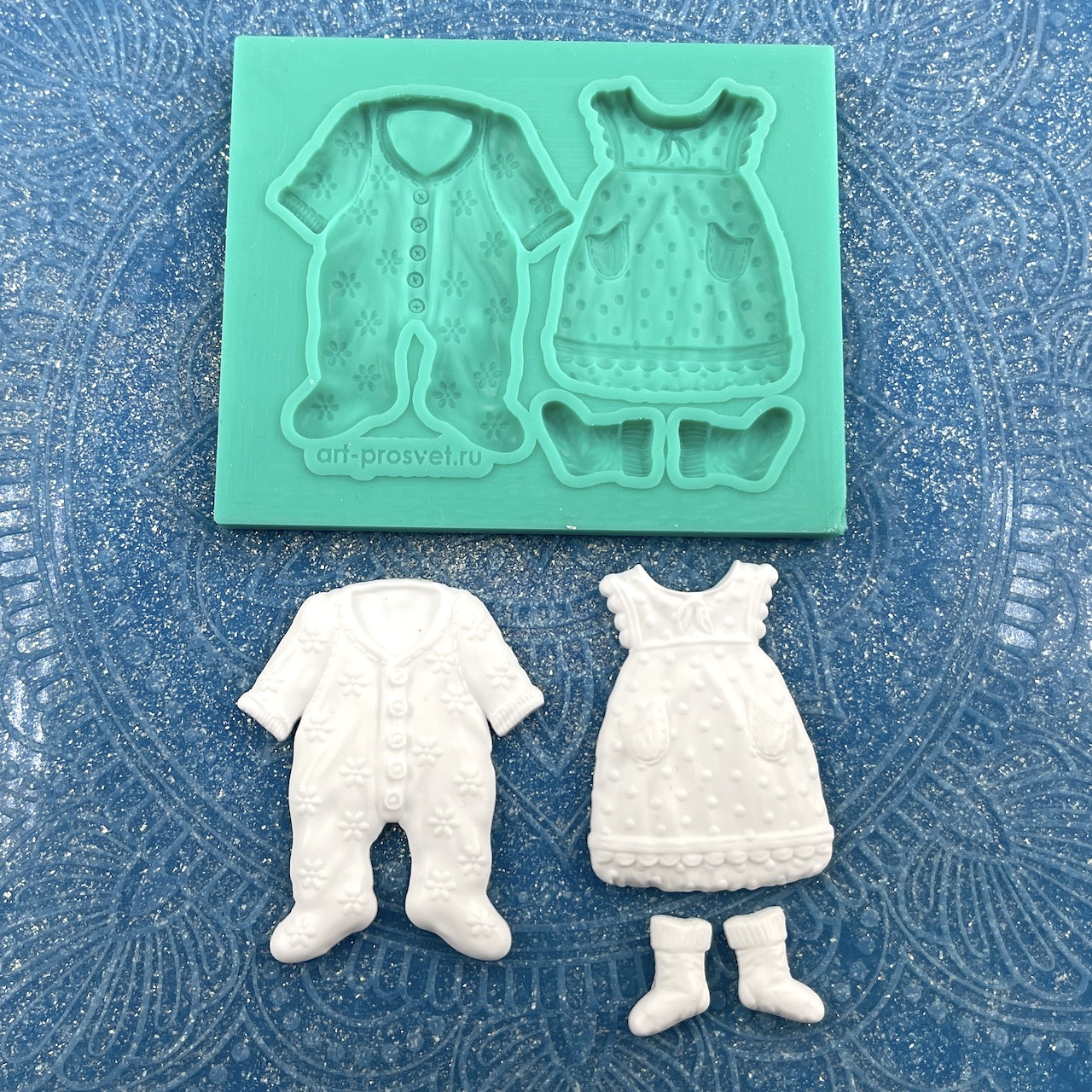 Фигурка, представленная на фото рядом с силиконовой формой, является примером окрашивания и декорирования отливок, не входит в комплект.