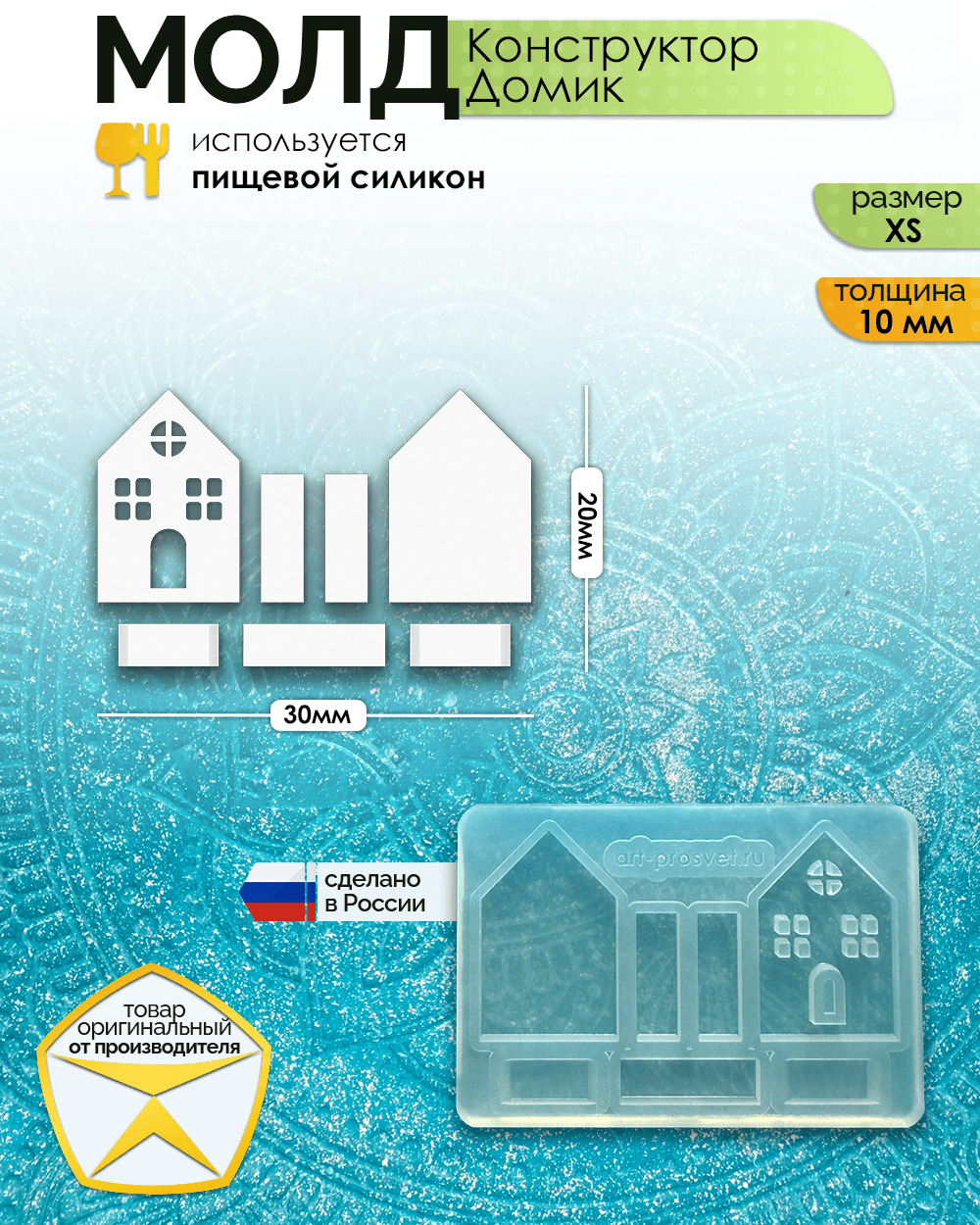 Молд-конструктор предполагает заливку отдельных элементов конструктора и последующую сборку в готовое изделие/фигурку. Для сборки элементов между собой вам потребуется клей. Клей не входит в комплект молда.Этот молд выполнен из прозрачного платинового силикона высшего качества. Прозрачность формы — это ваше преимущество: вы можете контролировать процесс заливки, видеть, как распределяется материал, и вовремя удалять пузырьки воздуха. Это гарантирует идеальный результат с первого раза.