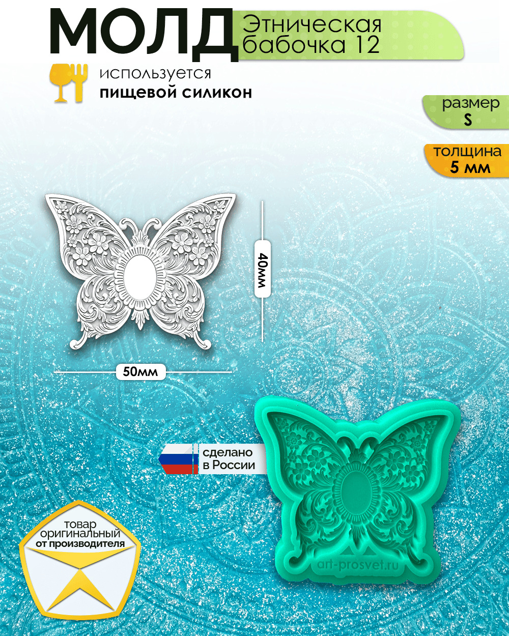 Арт-студия «ПроСвет» представляет элегантный силиконовый молд «Этническая бабочка 12» — многоразовую силиконовую форму, созданную для утонченного творчества и придания вашим работам благородного вида!