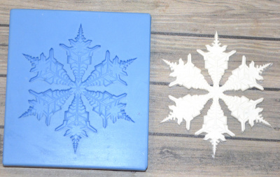 Размер снежинки 58х58 ммТолщина 2 ммХороший эффект дает использование прозрачного пластика или эпоксидной смолы.