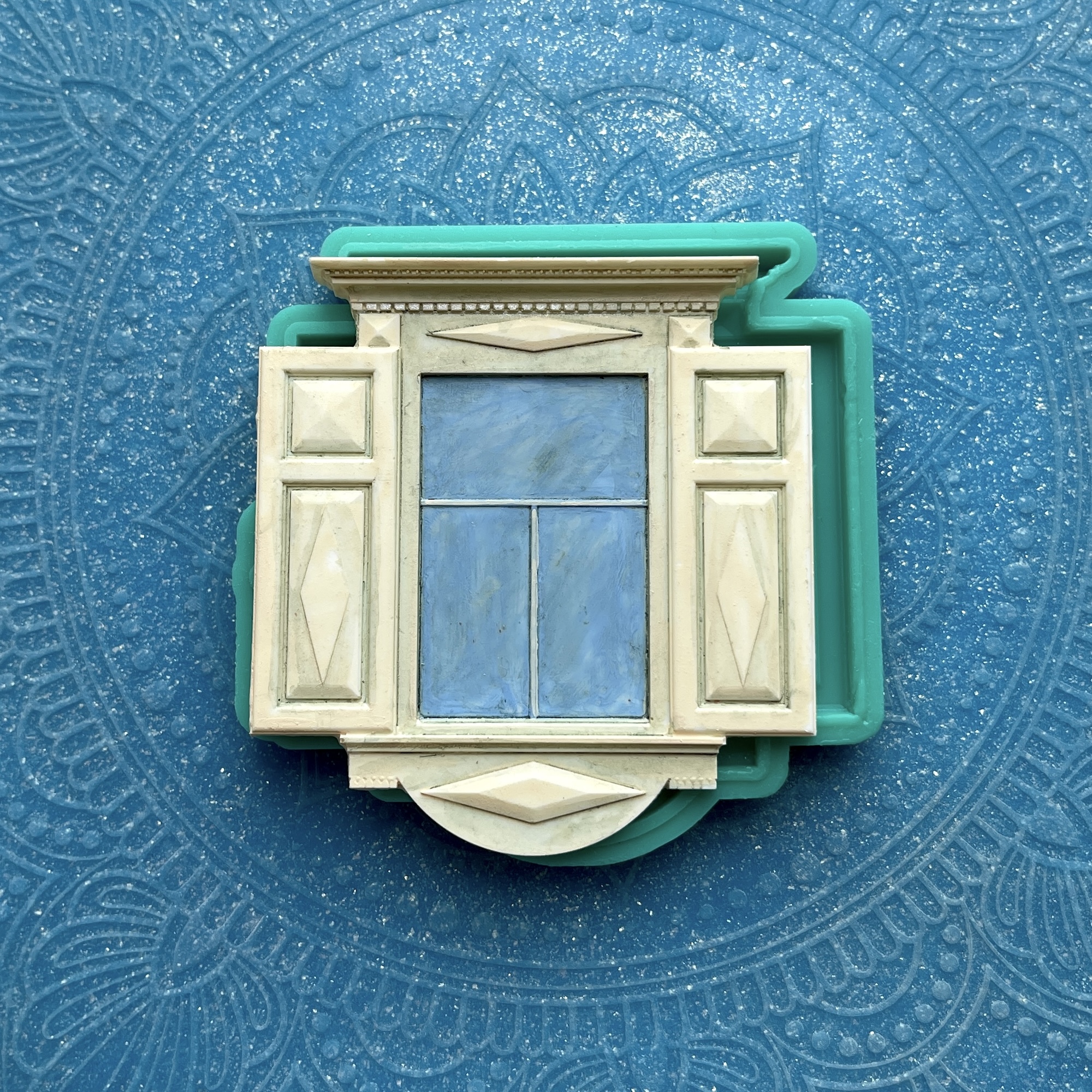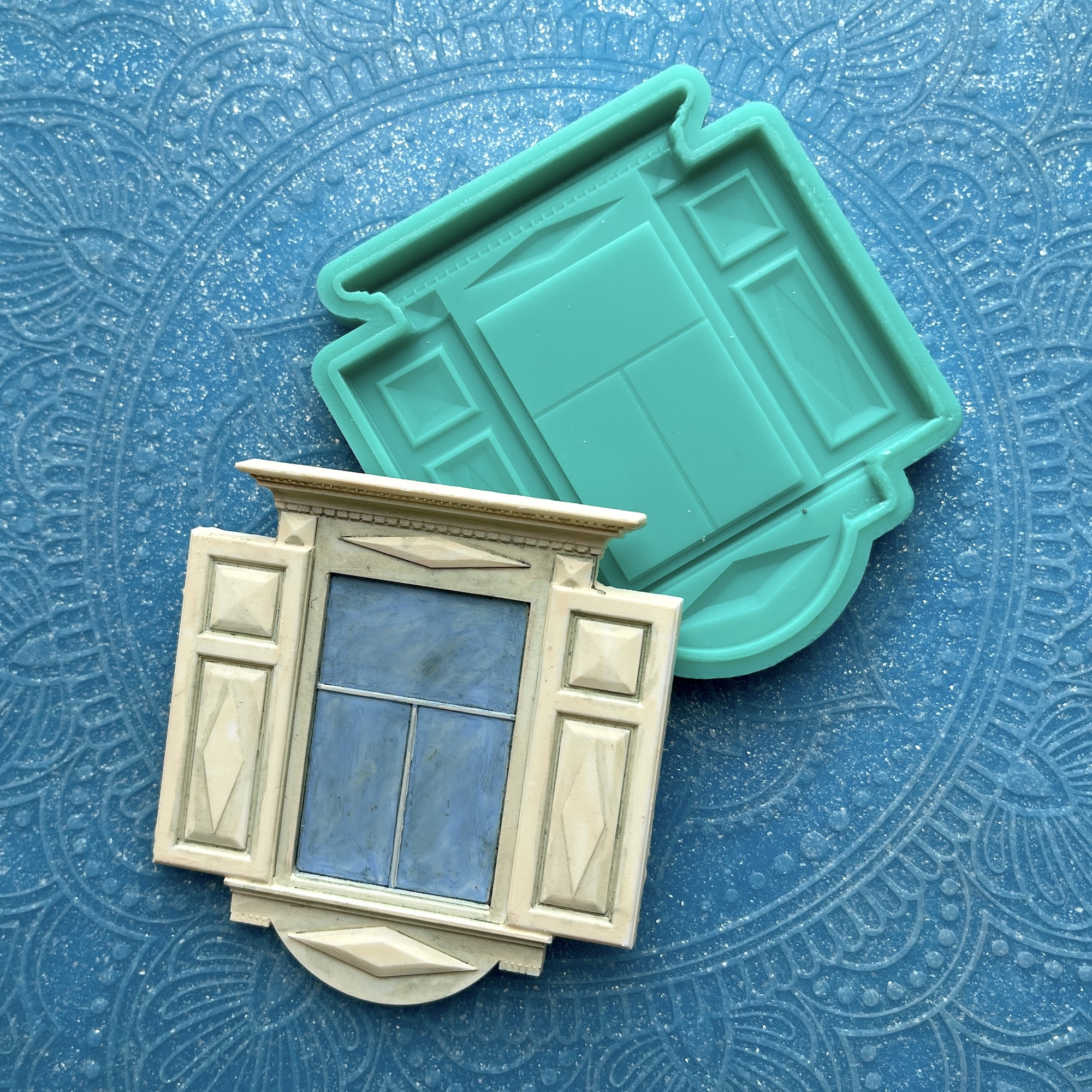 Фигурка, представленная на фото рядом с силиконовой формой, является примером окрашивания и декорирования отливок, не входит в комплект.