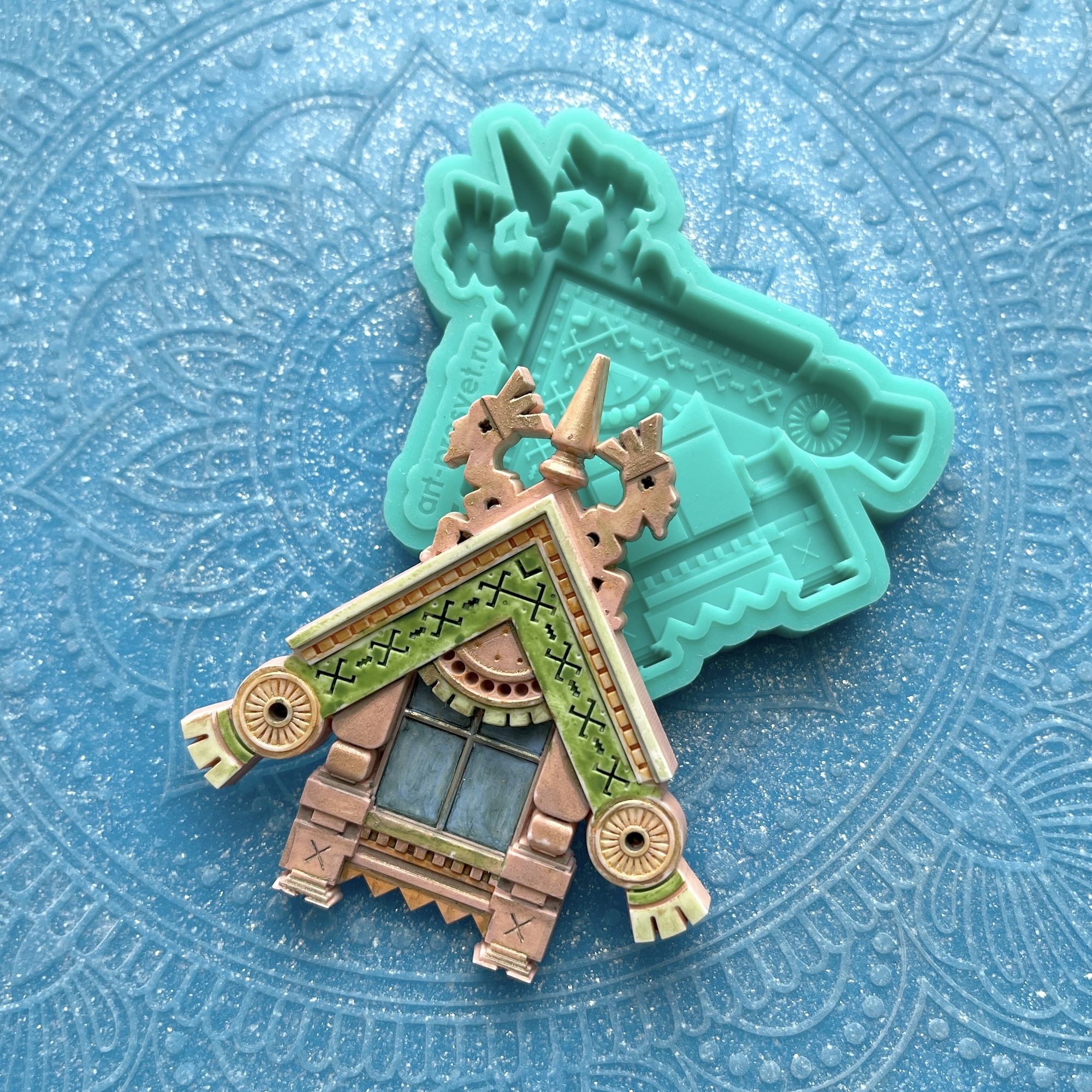 Фигурка, представленная на фото рядом с силиконовой формой, является примером окрашивания и декорирования отливок, не входит в комплект.