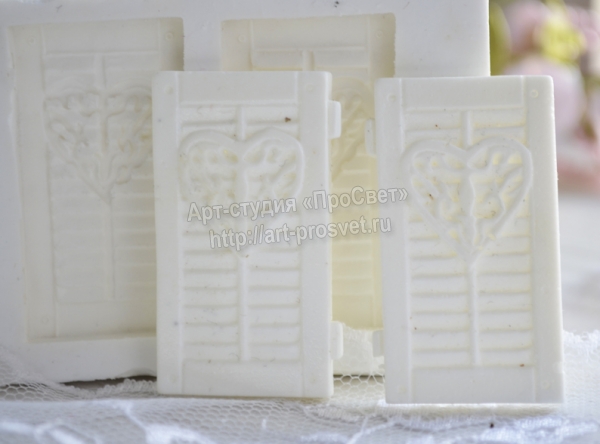 Силиконовая форма для изготовления оконных ставней. Изготавливаются в двойном экземпляре, т.к. они не идентичны. Размер каждой ставни 2х4см.
