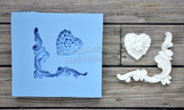 Силиконовая форма для изготовления углового элемента. Размер получаемой фигурки 3см. В комплекте с маленьким ажурным сердечком.