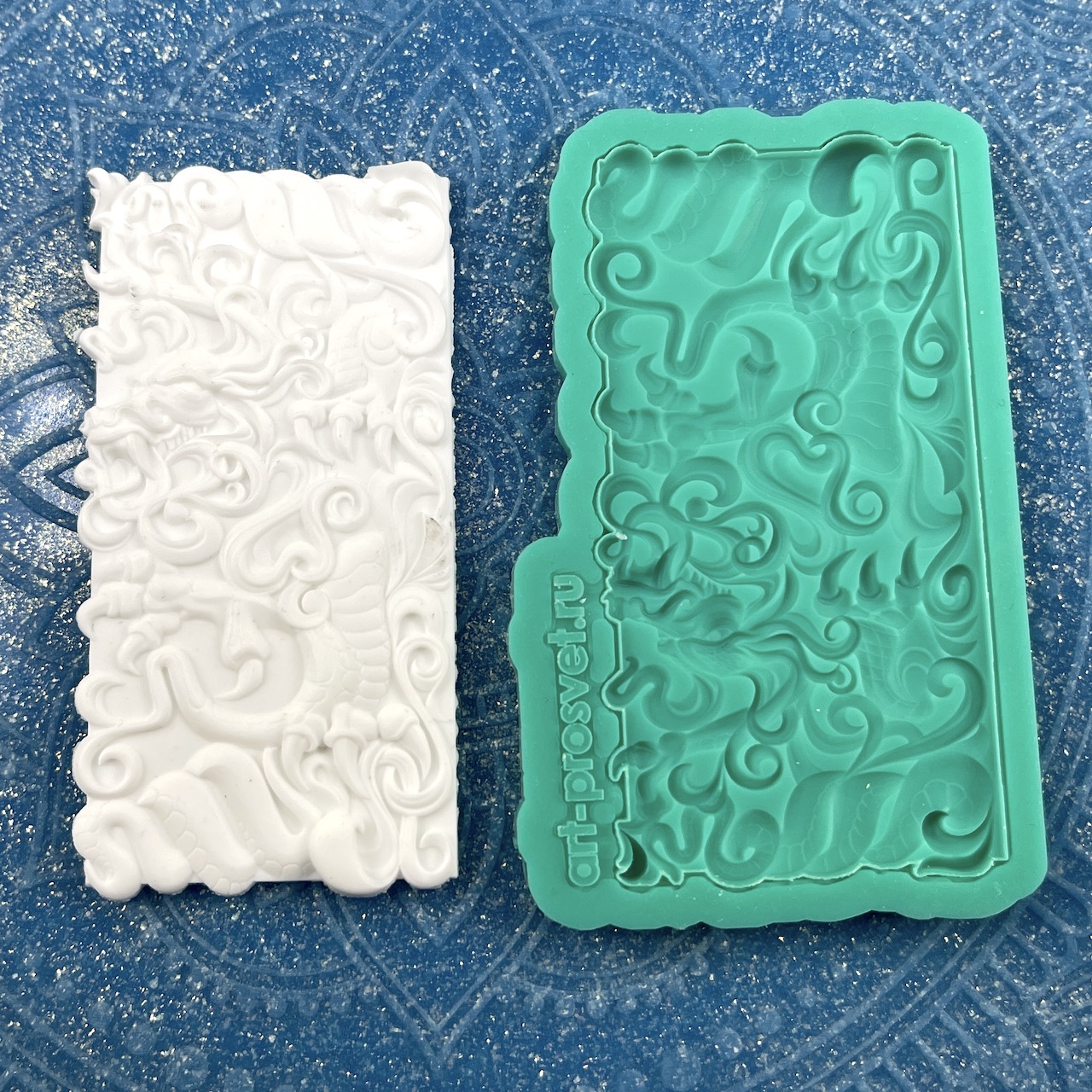Фигурка, представленная на фото рядом с силиконовой формой, является примером окрашивания и декорирования отливок, не входит в комплект.