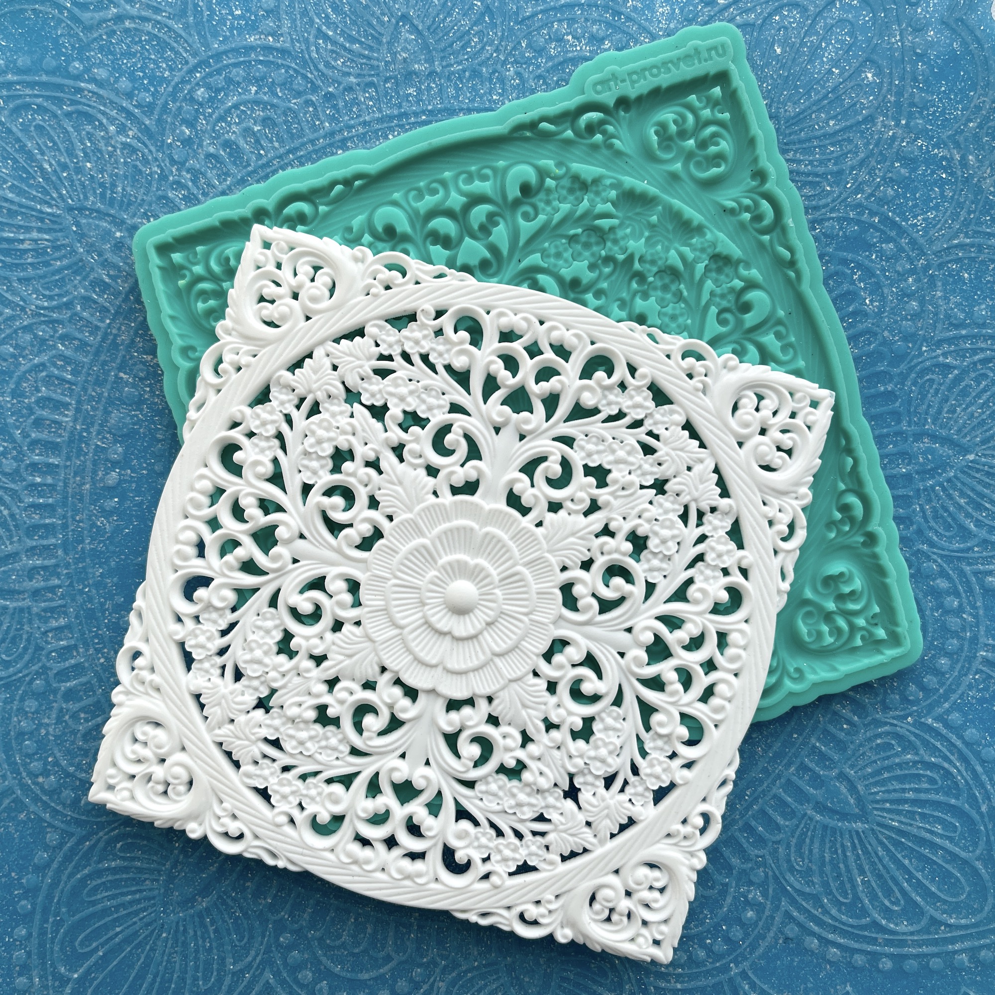 Фигурка, представленная на фото рядом с силиконовой формой, является примером окрашивания и декорирования отливок, не входит в комплект.