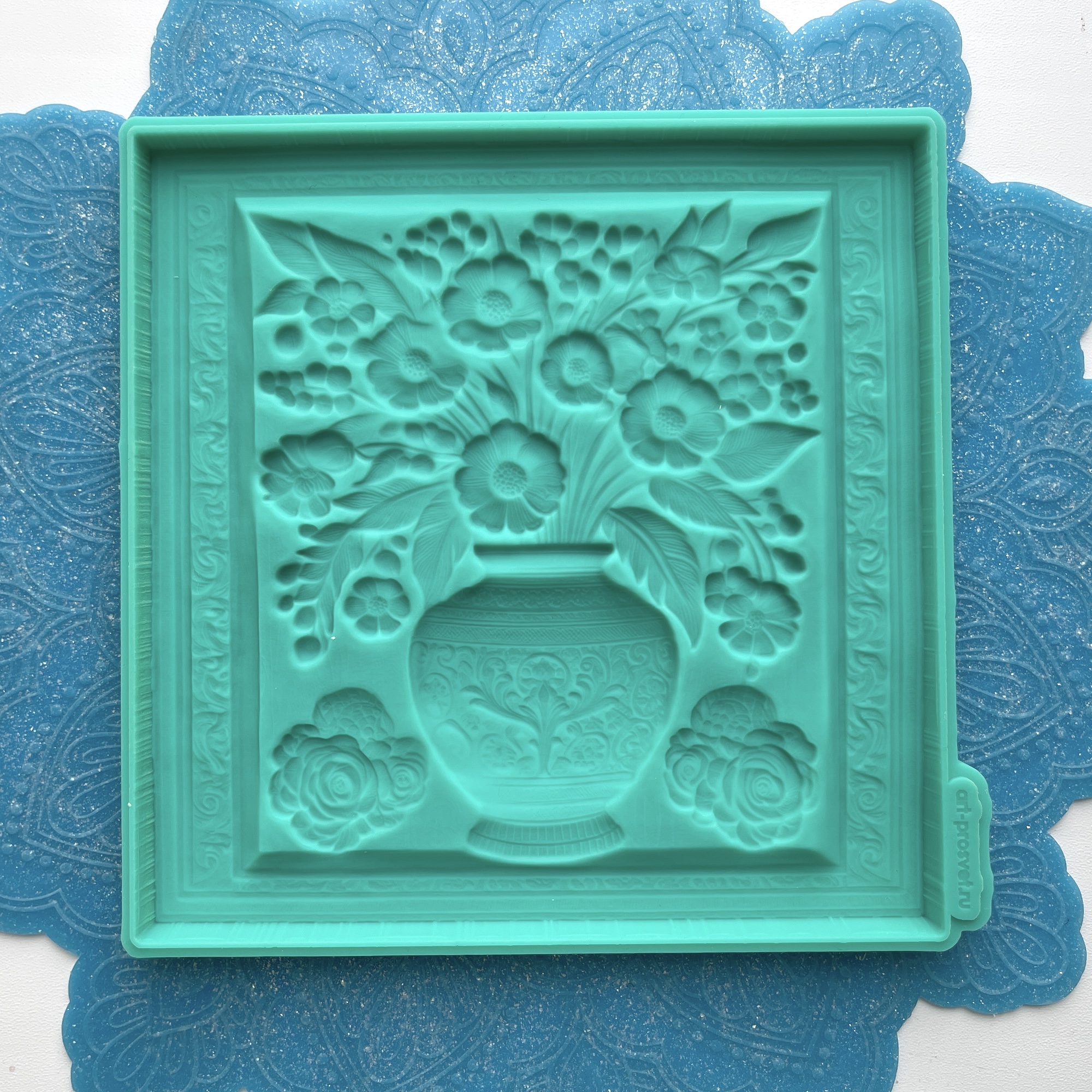 Рады представить нашу последнюю инновацию в мире художественного творчества и декоративного искусства - силиконовую форму плитку-барельеф "Ваза с цветами в рамке". Это не просто новый шедевр от компании ПроСвет®, но и первый в истории барельеф, разработанный с применением передовых технологий нейросети и генеративного искусственного интеллекта.
