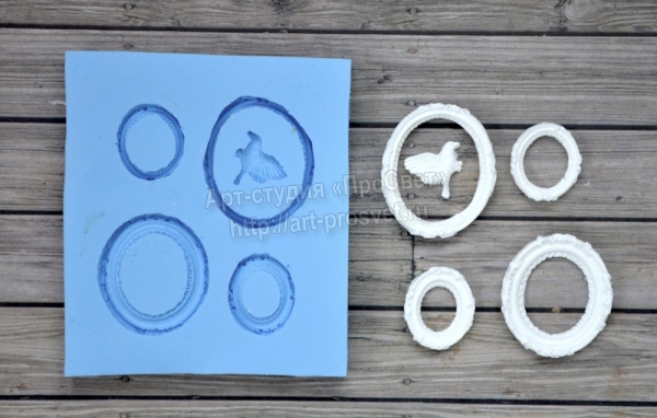 Силиконовая форма для изготовления набора овальных рамочек. Размер каждой рамочки не более 3см. Элемент "птичка" в подарок.