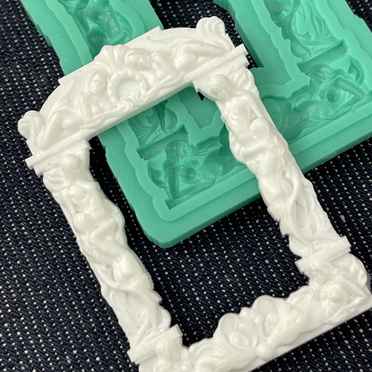 Фигурка, представленная на фото рядом с силиконовой формой, является примером окрашивания и декорирования отливок, не входит в комплект.