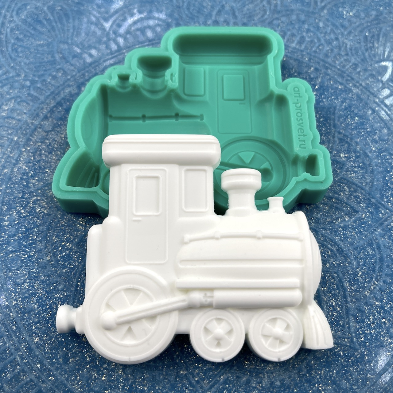 Фигурка, представленная на фото рядом с силиконовой формой, является примером окрашивания и декорирования отливок, не входит в комплект.