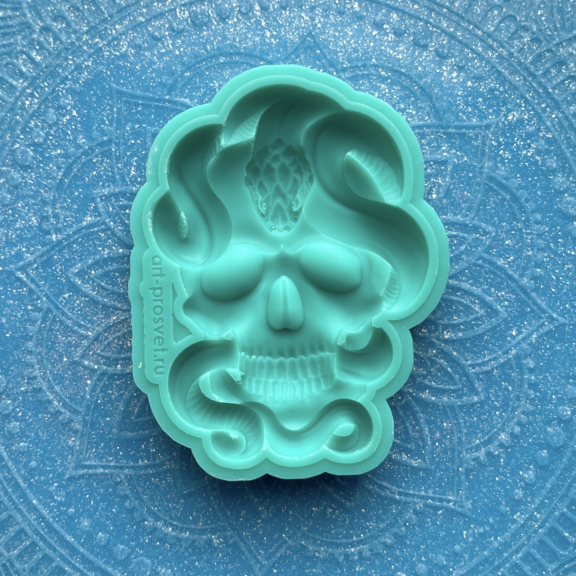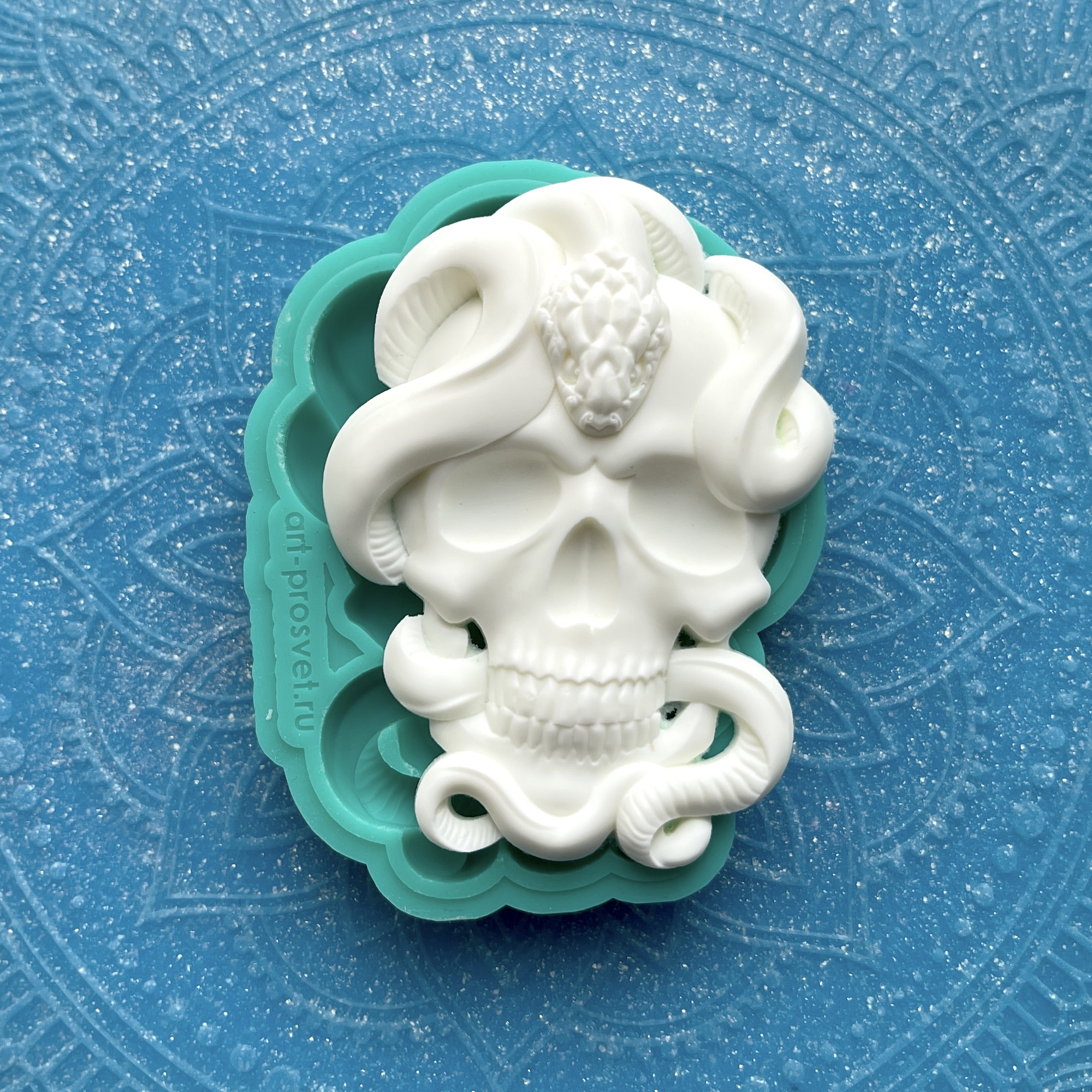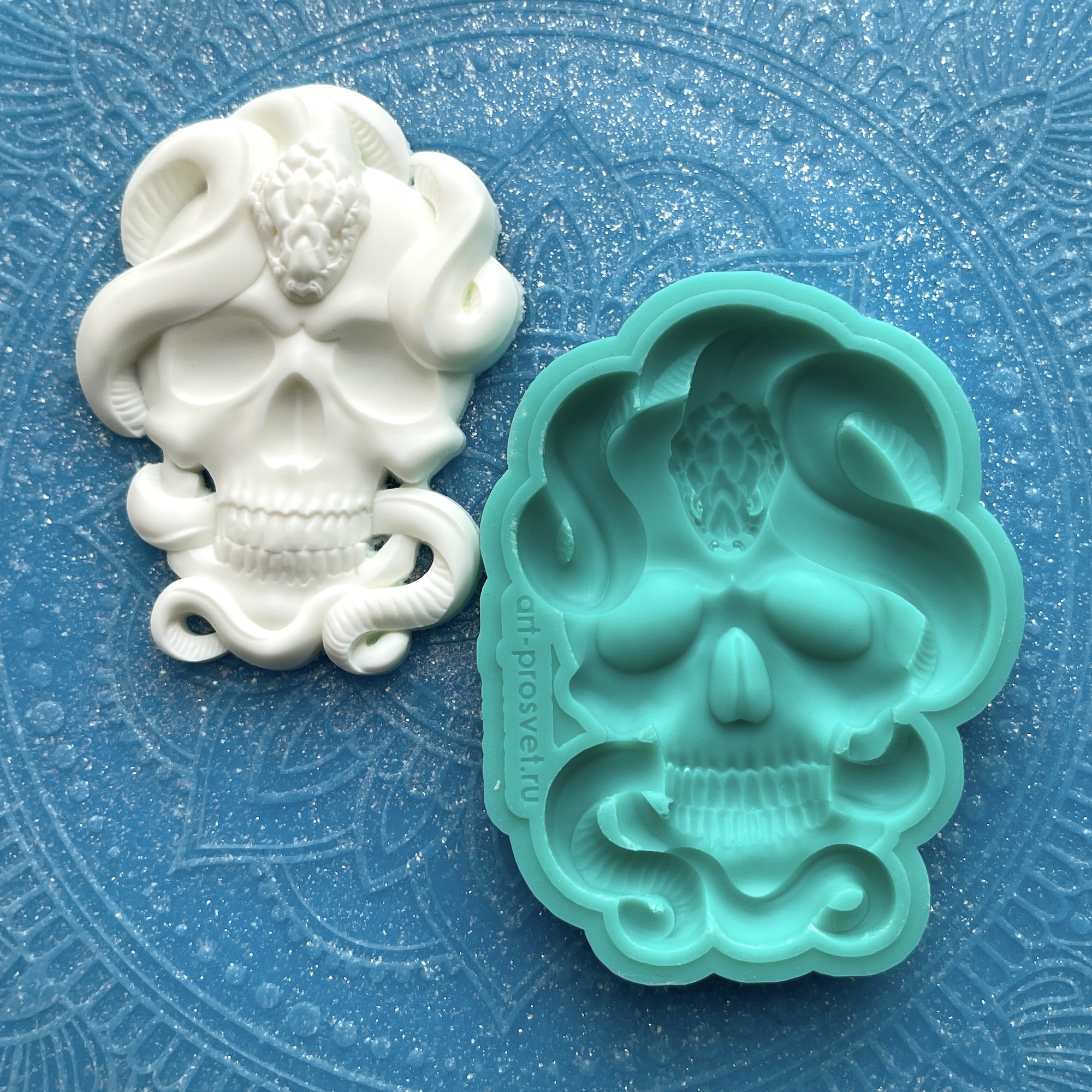 Фигурка, представленная на фото рядом с силиконовой формой, является примером окрашивания и декорирования отливок, не входит в комплект.