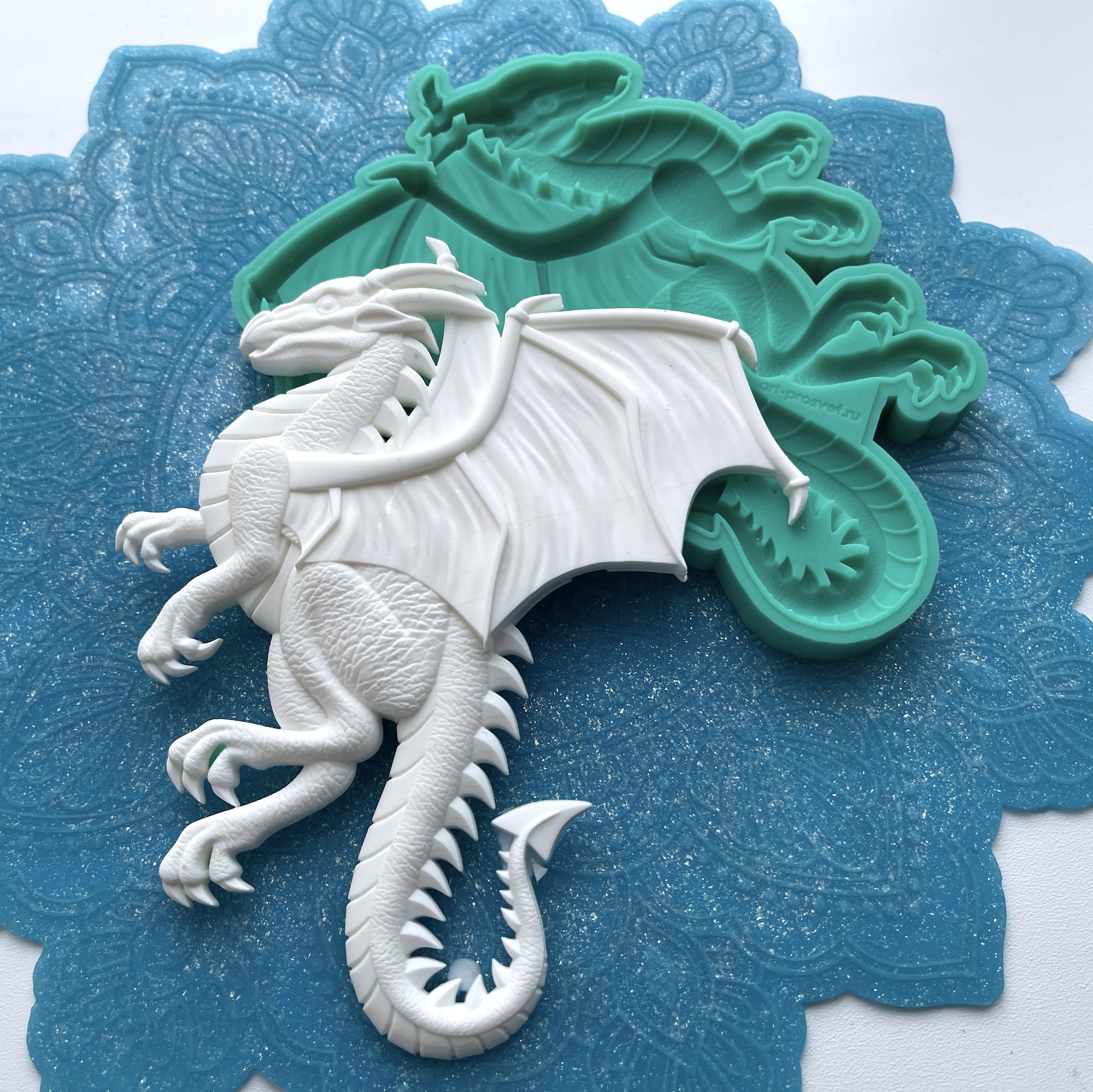 Фигурка, представленная на фото рядом с силиконовой формой, является примером окрашивания и декорирования отливок, не входит в комплект.