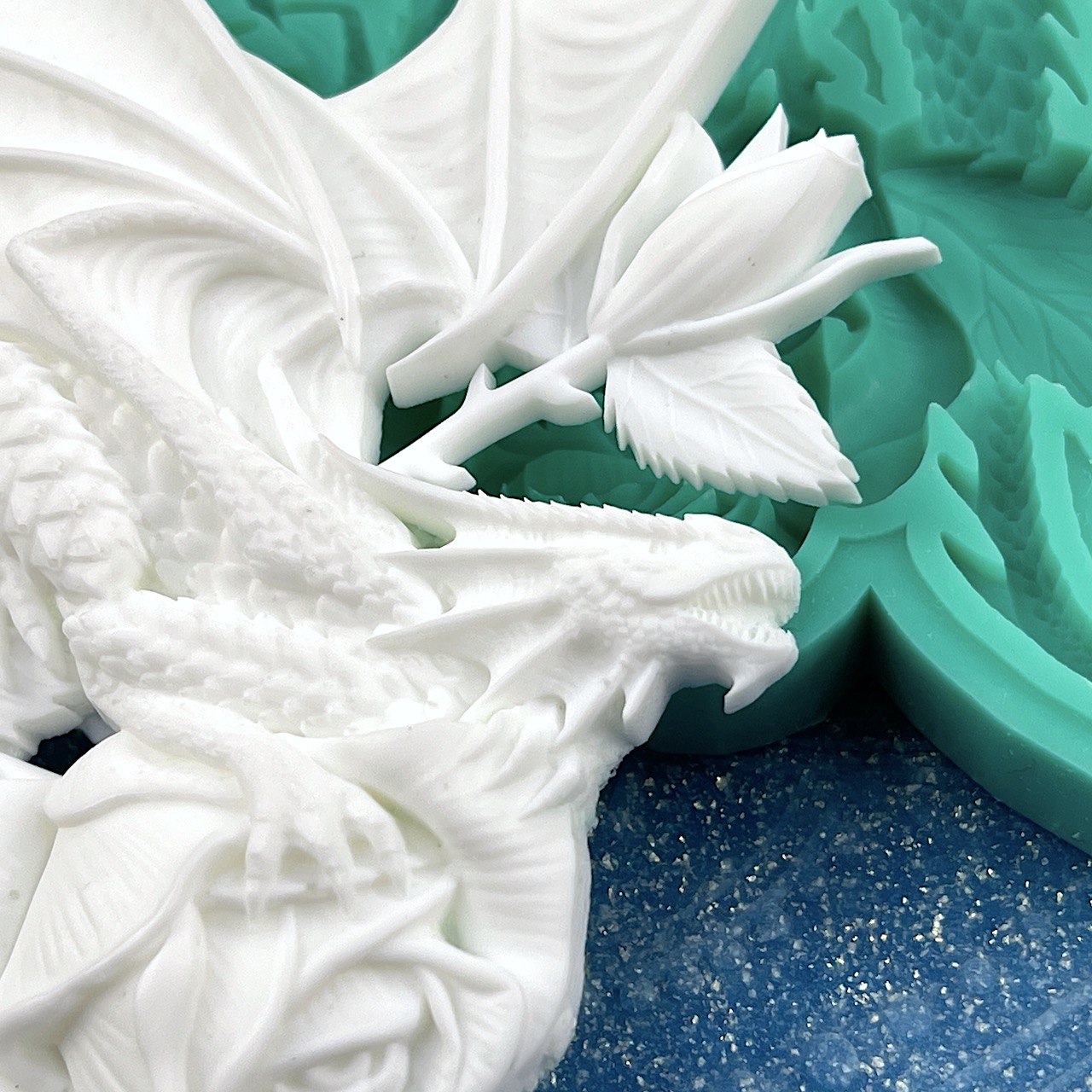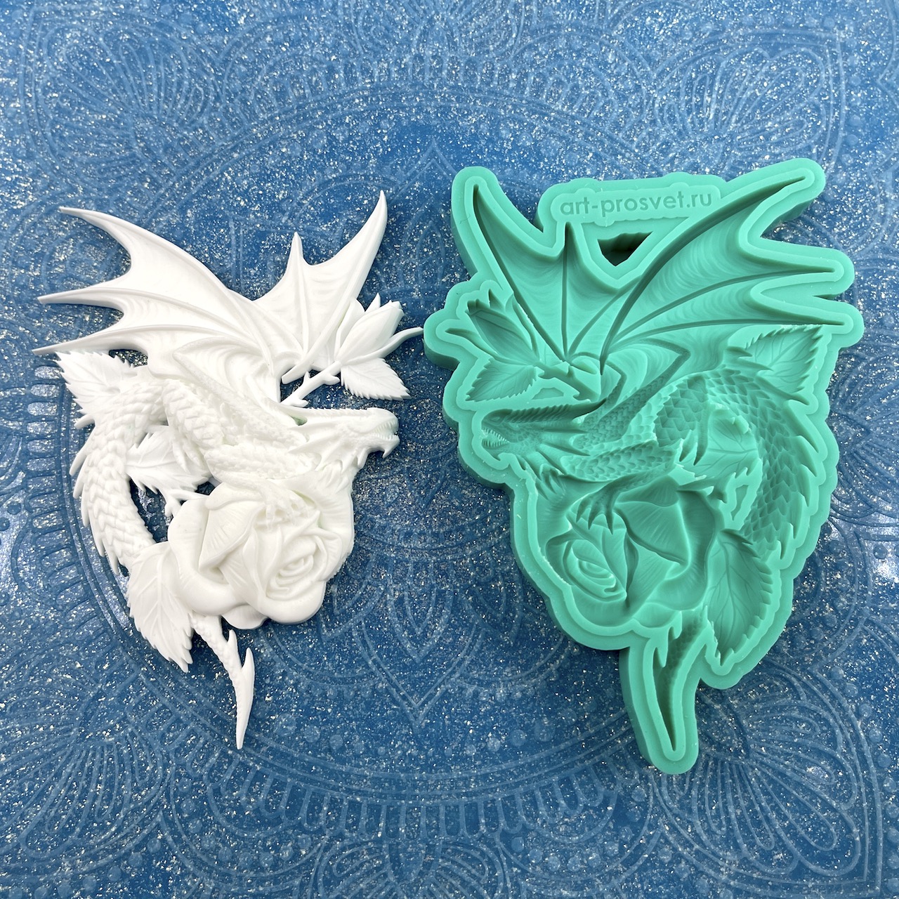 Фигурка, представленная на фото рядом с силиконовой формой, является примером окрашивания и декорирования отливок, не входит в комплект.