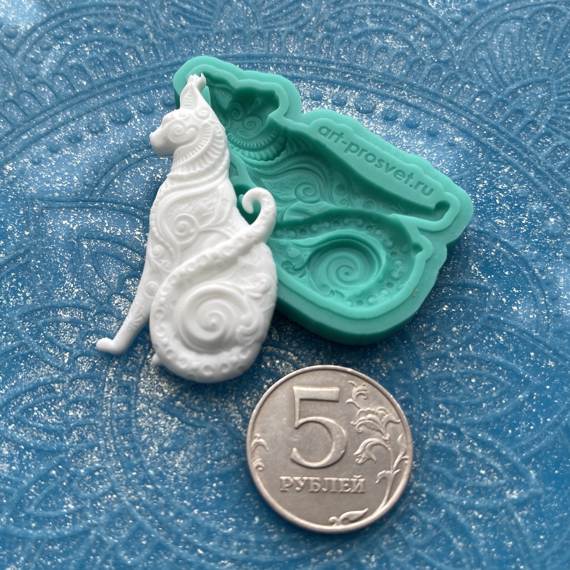 Фигурка, представленная на фото рядом с силиконовой формой, является примером окрашивания и декорирования отливок, не входит в комплект.