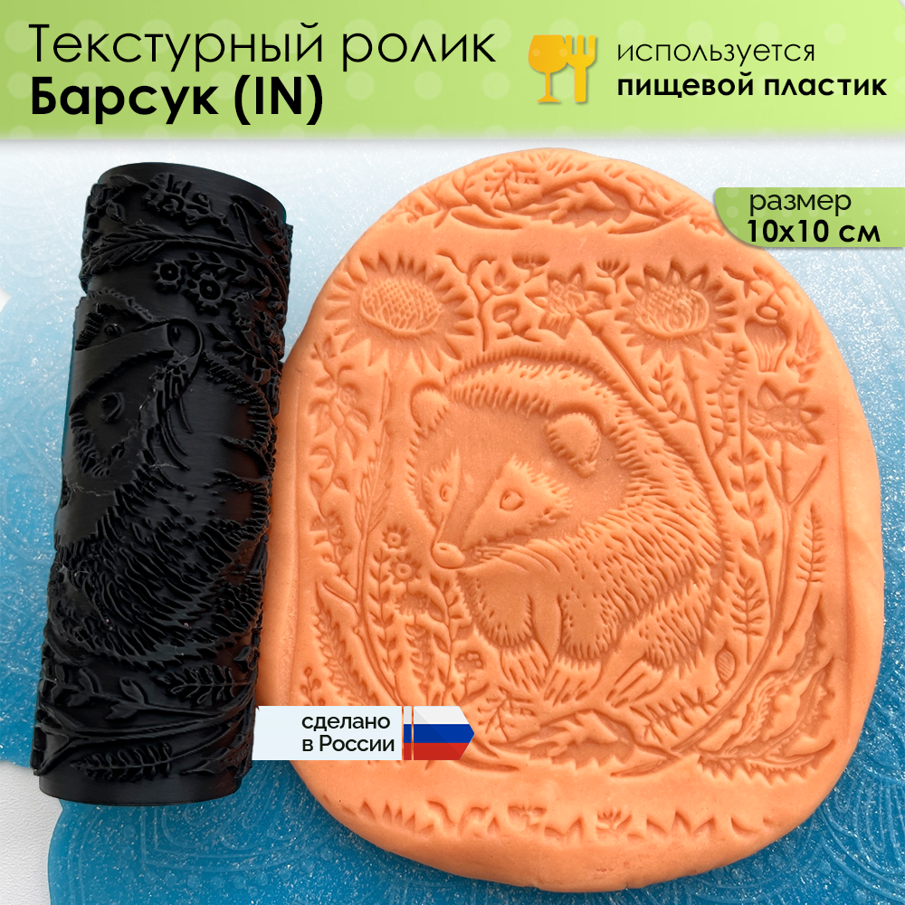 Текстурный ролик (скалка) "Барсук" (L) IN, площадь 100x100 мм