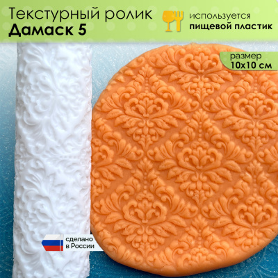 Текстурный ролик (скалка) "Дамаск 5" (L), площадь 100x100 мм