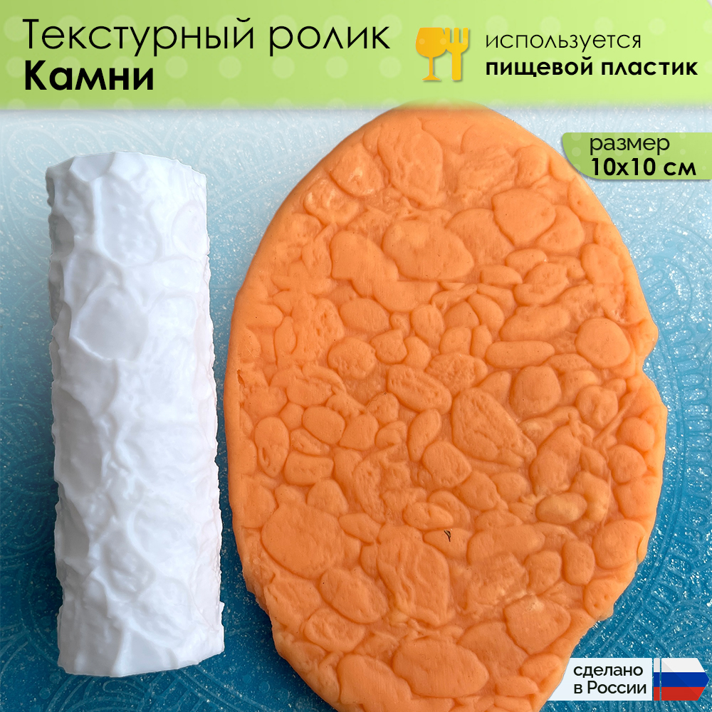 Текстурный ролик (скалка) "Камни" (L), площадь 100x100 мм