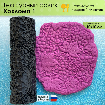 Текстурный ролик (скалка) "Хохлома 1" (L), площадь 100x100 мм