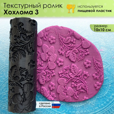 Текстурный ролик (скалка) "Хохлома 3" (L), площадь 100x100 мм