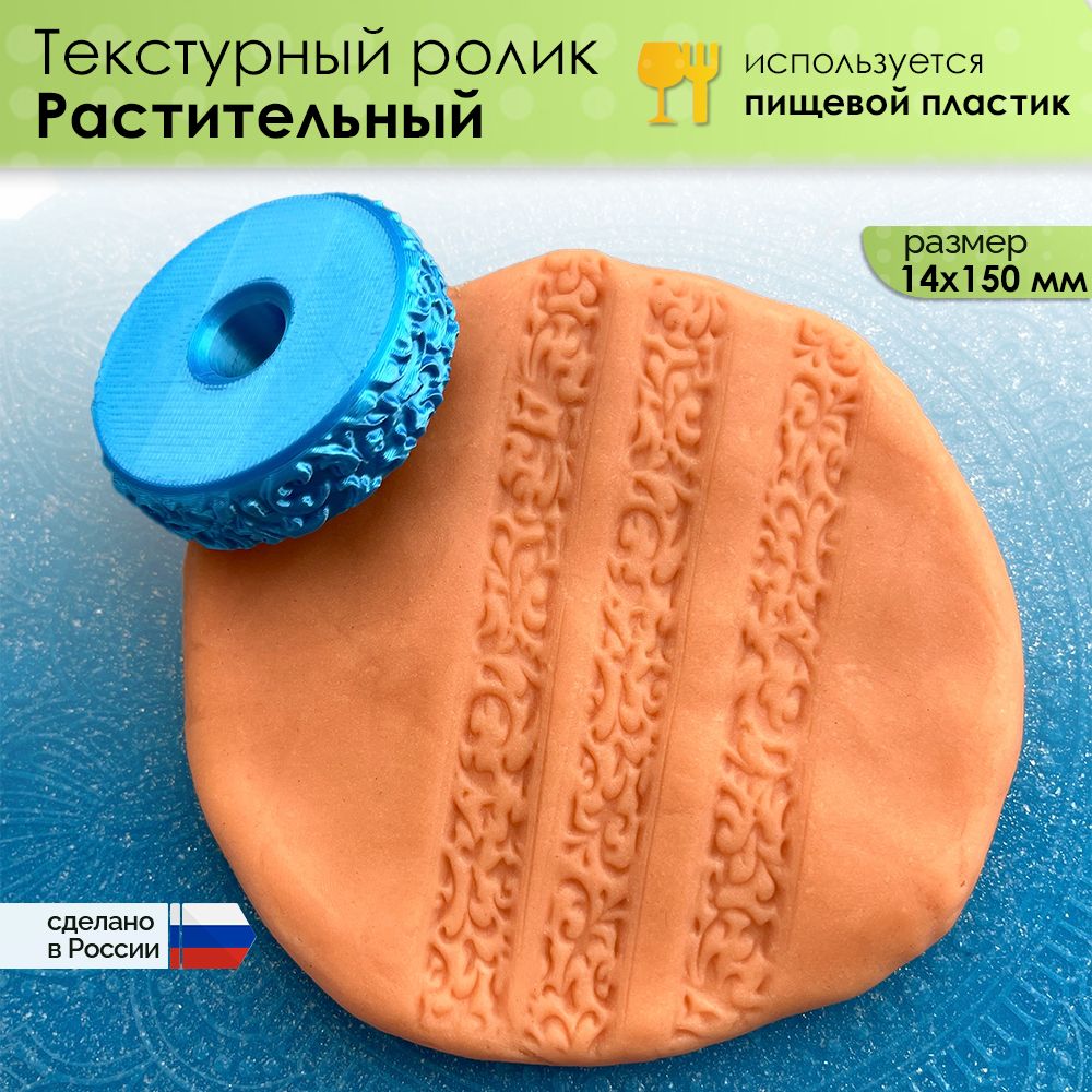 Текстурный ролик (скалка) "Растительный" (XL), площадь 14x150 мм