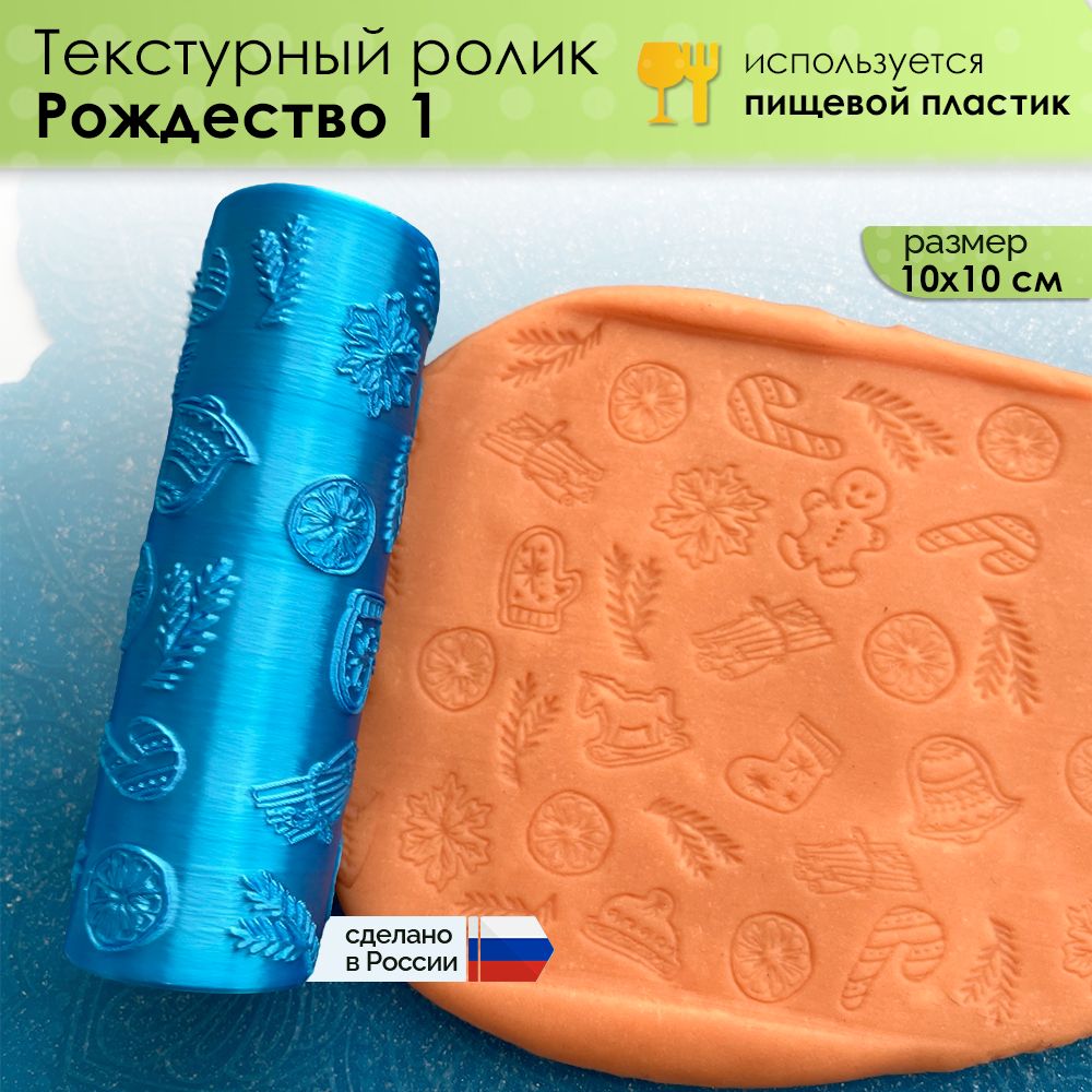 Текстурный ролик (скалка) "Рождество 1" (L), площадь 100x100 мм