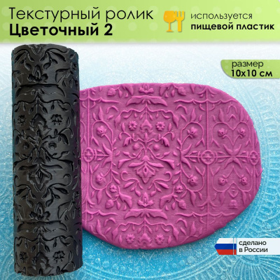 Текстурный ролик (скалка) "Цветочный 2" (L), площадь 100x100 мм