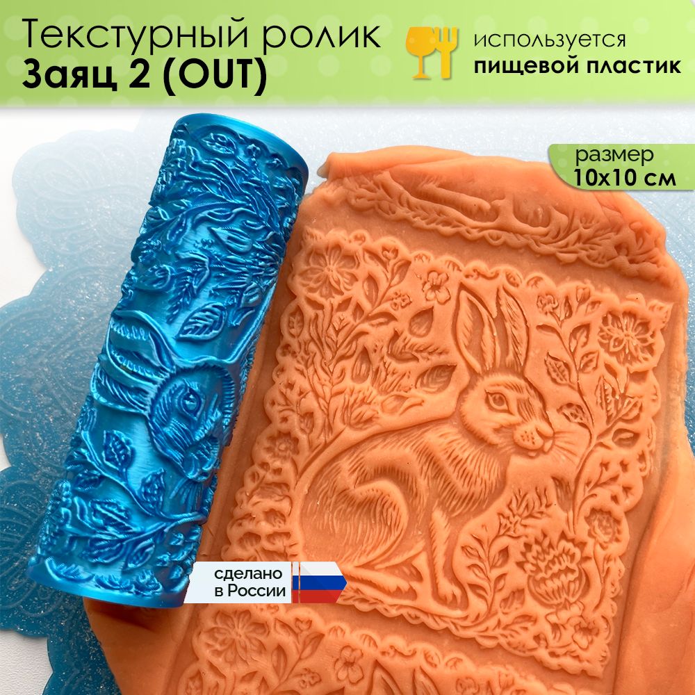 Текстурный ролик (скалка) "Заяц 2" (L) OUT, площадь 100x100 мм
